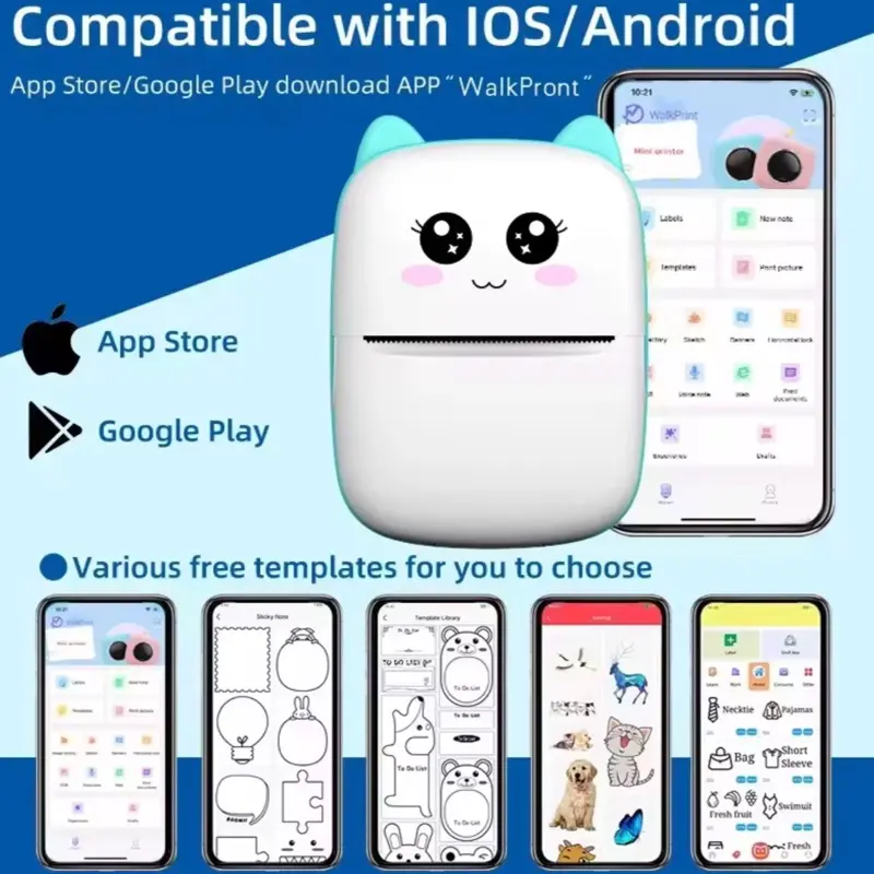 MINI Portable Thermal Printer Wireless Label Memo Machine 200dpi Bluetooth Inkless Pocket Imprimante Phone Notes Printing Paper.