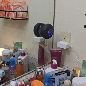 The speaker works fine, but does not stick to my shower wall or door at all! It just sits on the holder but it does work so that’s good at least. Wouldn’t buy again but not too upset about it for the price. 🤷🏽♀️