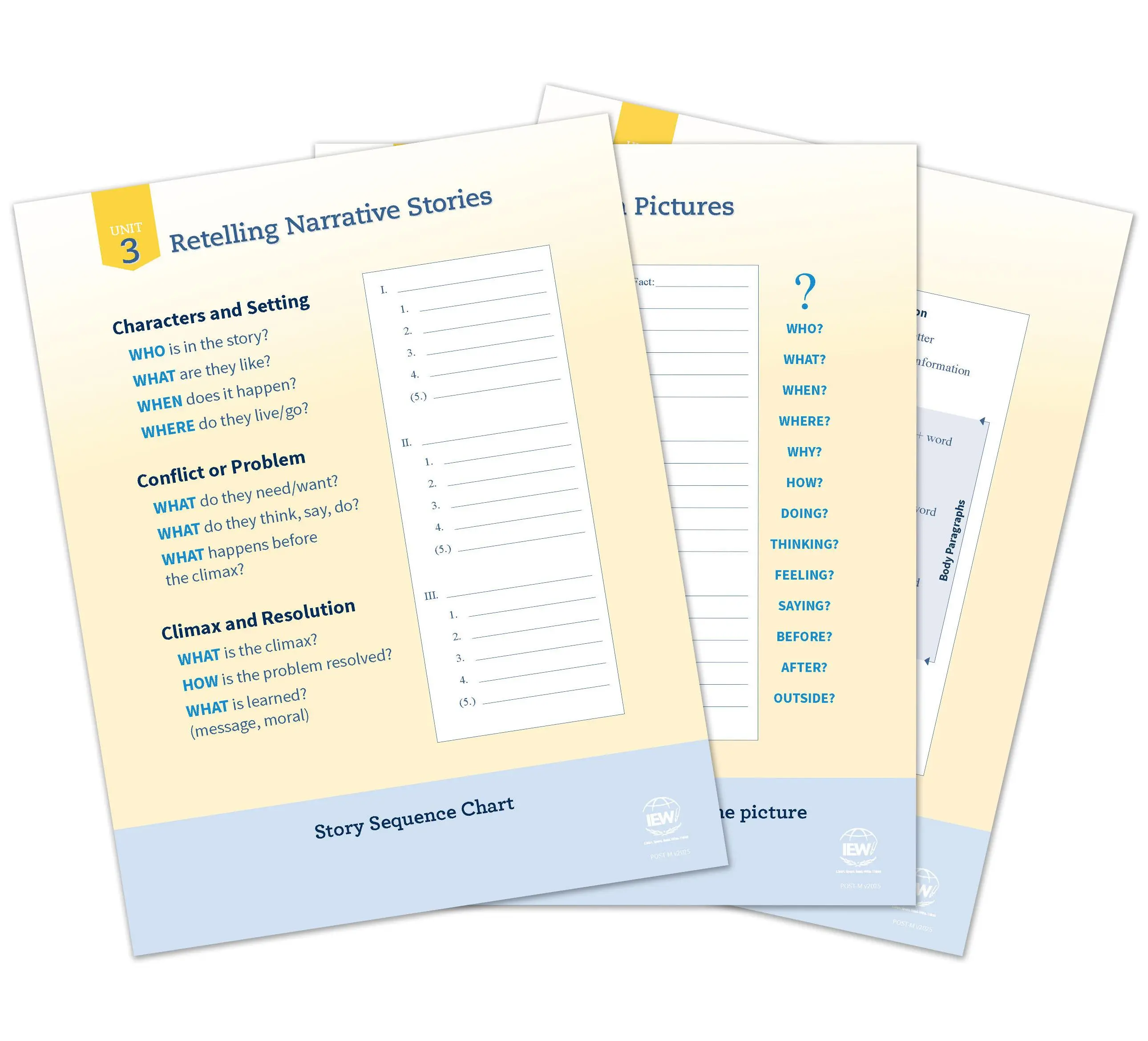 With one poster for each of the nine units (two for Unit 8) and one poster representing IEW’s stylistic techniques, these full-color, 8.5" x 11” cards provide a handy reference and teaching tool for families and small groups. Includes 10 structural models posters and 1 stylistic techniques poster.