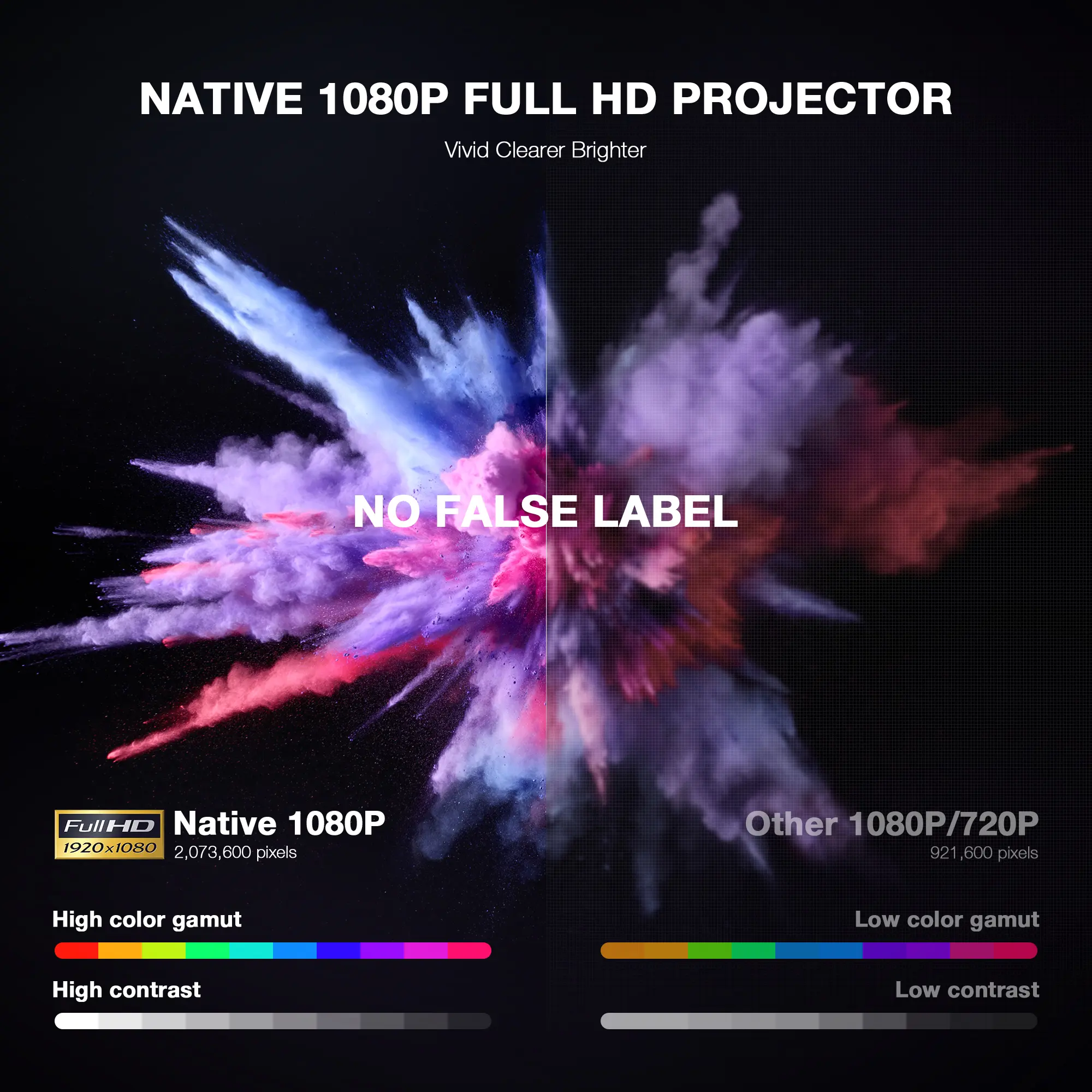 Experience sharp details with support for 1080P resolution and 4K content. The 500 ANSI lumen brightness and high contrast ratio deliver vibrant and clear images in various lighting conditions.