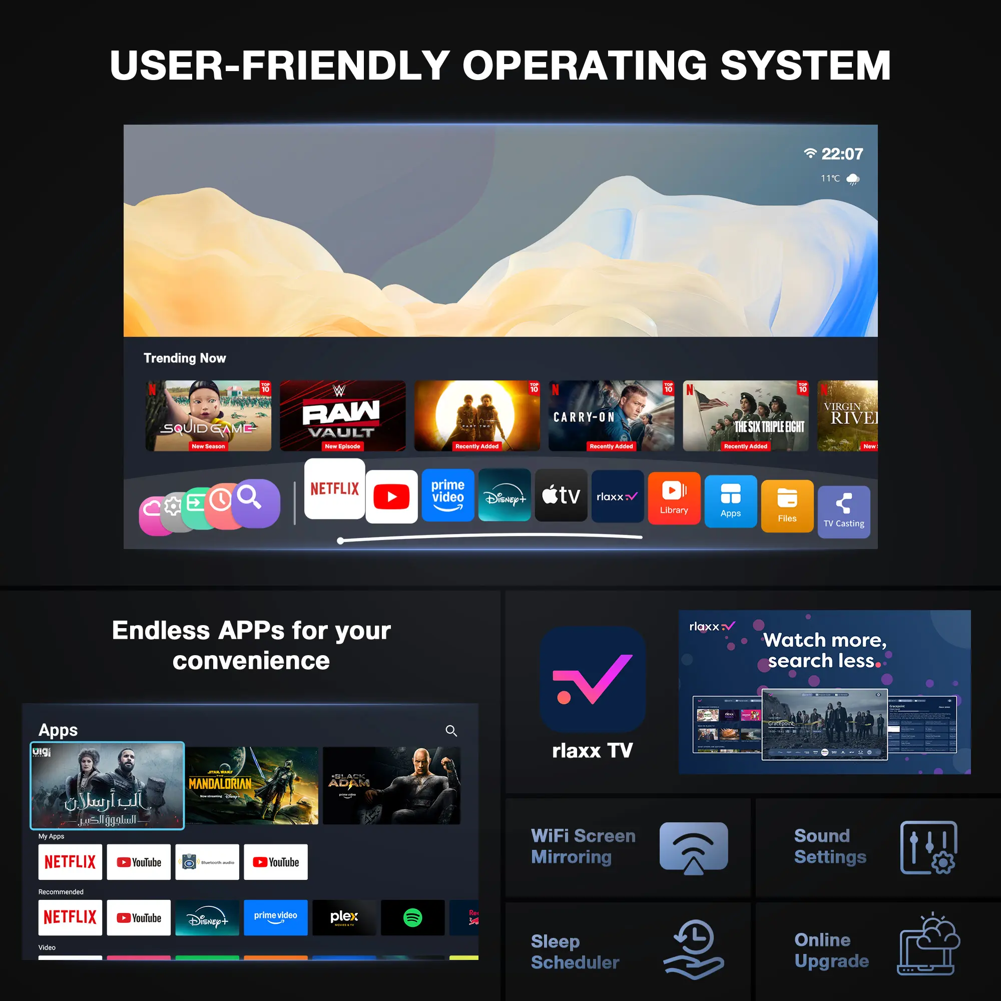 Equipped with fast WiFi and stable Bluetooth connectivity for a reliable link. Easily cast content from your phone, tablet, or laptop without significant lag.