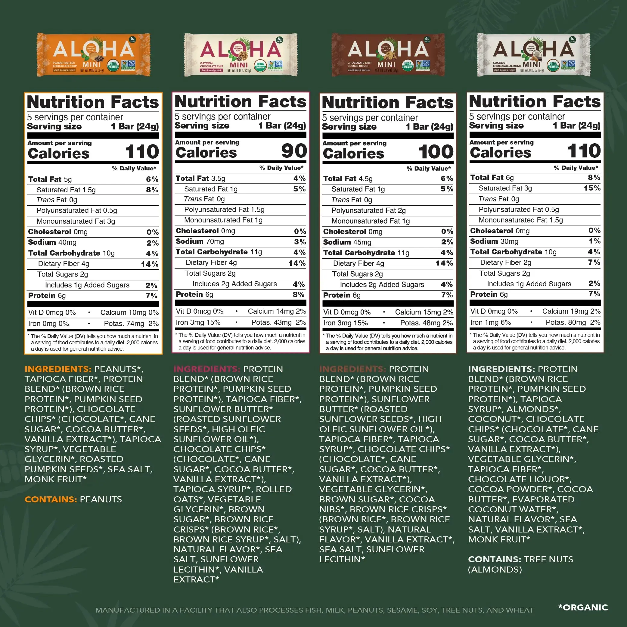 I have been purchasing Aloha Bars for almost 3 years now. I love the flavor variety and also appreciate that I can grab a "mini" bar on the go or for a quick pick me up in the morning, before a workout. The bars are also a great treat at the end of the day. I highly recommend the Peanut Butter Chocolate Chip, Chocolate Cherry, Chocolate Espresso and the Oatmeal Chocolate Chip - give them a try!