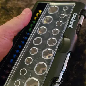 ·Compact and Organized Tool Storage: Includes a durable, blow-molded case with designated slots and clearly imprinted sizes for every bit and socket, keeping your tools neat and easy to access.