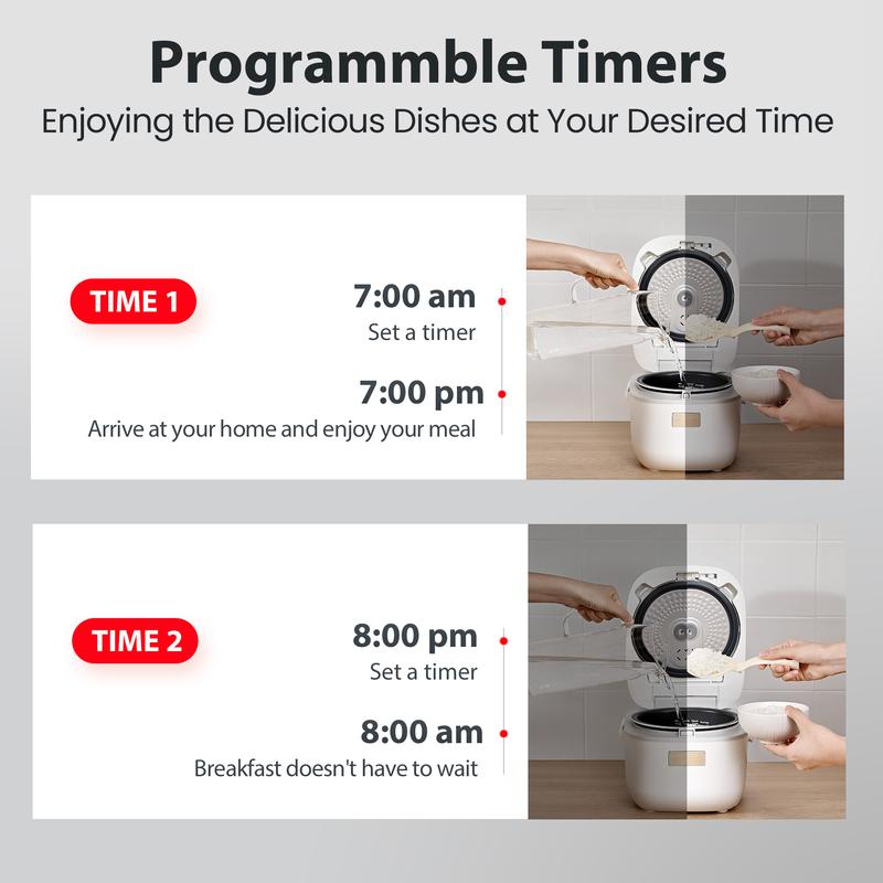·【Fuzzy Logic Rice Cooker】Allows this Japanese rice cooker to sense the moisture content of the rice and adjust the temperature and cooking time accordingly. Results in perfectly cooked fluffy rice every time, without the need for manual adjustments or guesswork. It also helps the rice maker cooker cook other types of grains and dishes to perfection by adjusting the cooking parameters to the specific needs of the food