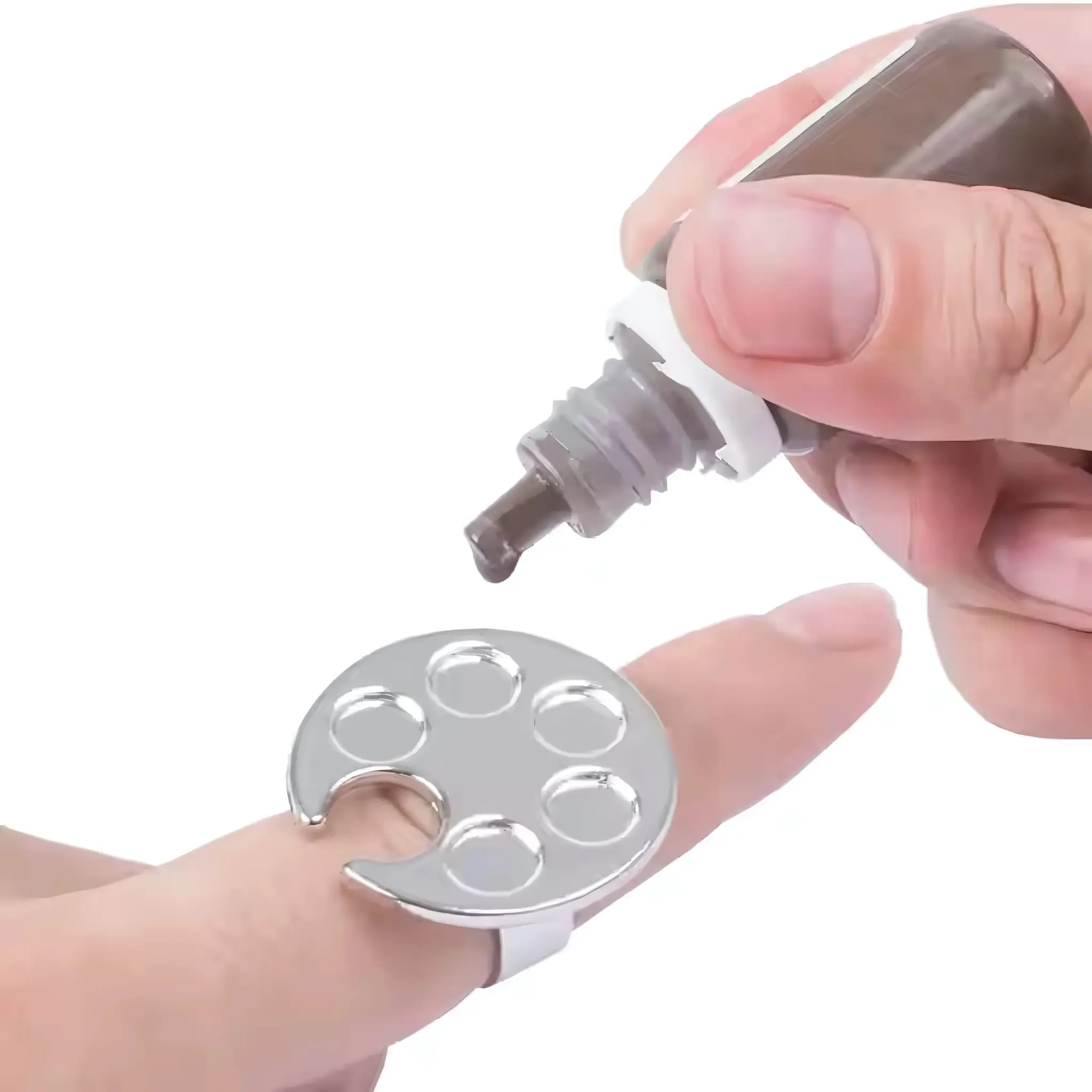 Create flawless nail designs with ease using the Nail Art Ring Palette, a mini manicure palette designed for ultimate convenience. This must-have tool is perfect for nail artists and DIY enthusiasts, allowing you to place small amounts of gel directly on the palette for easy access while working.