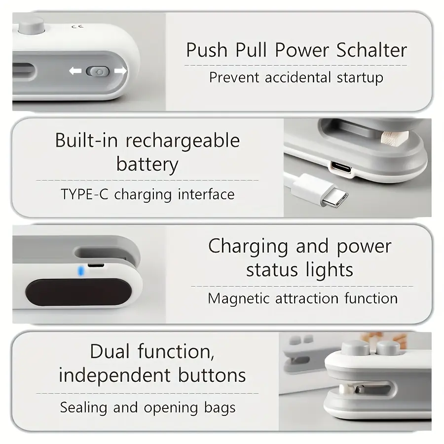 Mini Sealing Machine Compact Size Dual Function Cut & Seal, Easy Button Operation, Hand Protection, Snack Preservation, Small Home Use, Plastic Bag Sealer