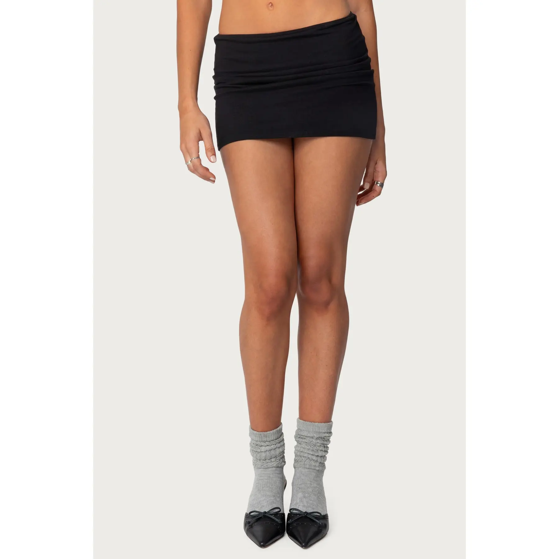 The skirt is okay, it’s pretty long as I am 5’0. The skirt doesn’t fit low rise on me and instead fits high rise and the additional stretch on the top of the skirt makes it look very cheap.