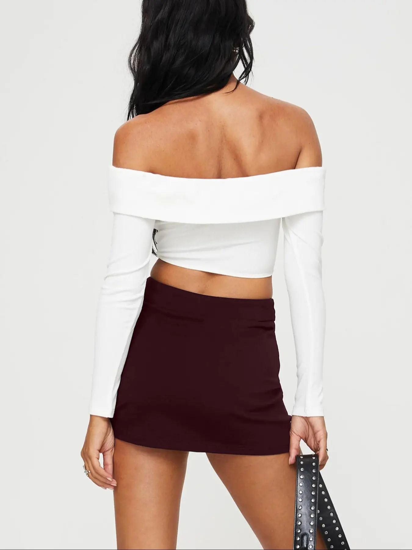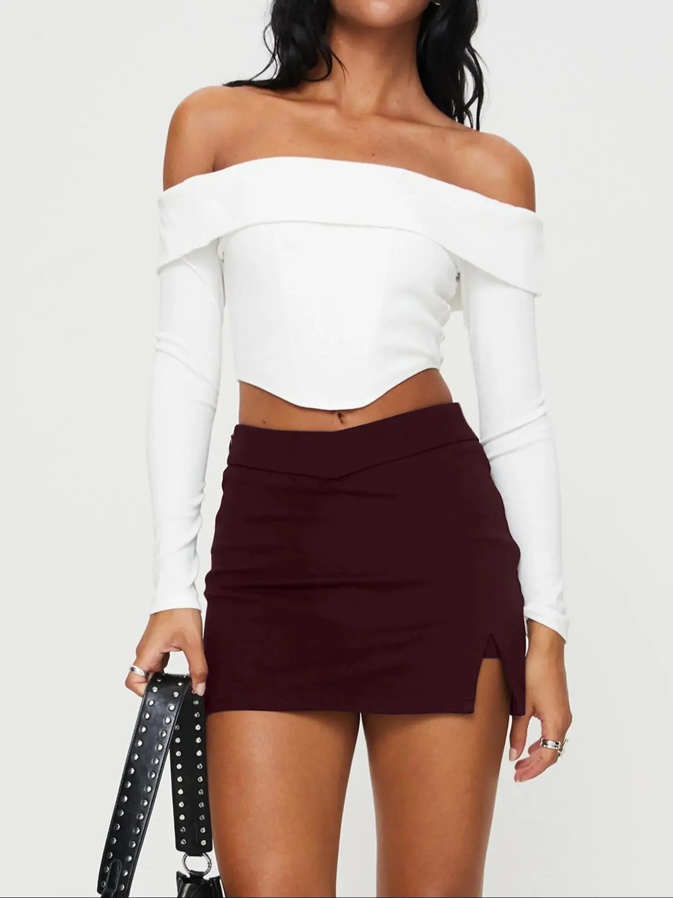 Pretty solid black skirt I like the length however I don’t like that it bunches up at the top hem and it’s not higher waisted
