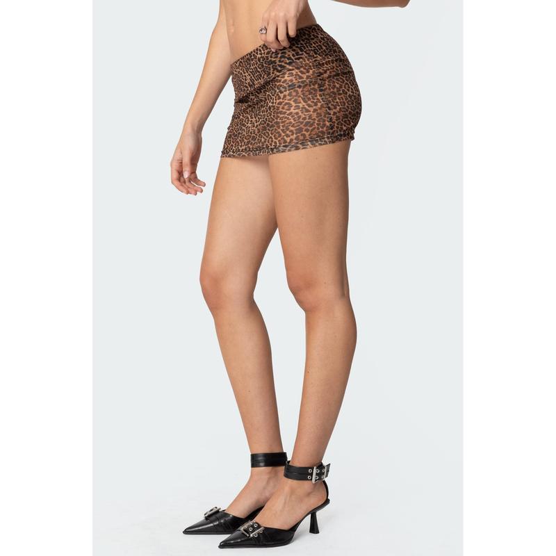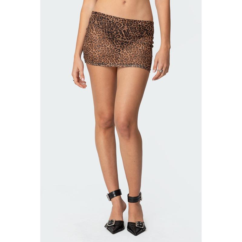 5. Leopard Printed Sheer Mesh Mini Skirt