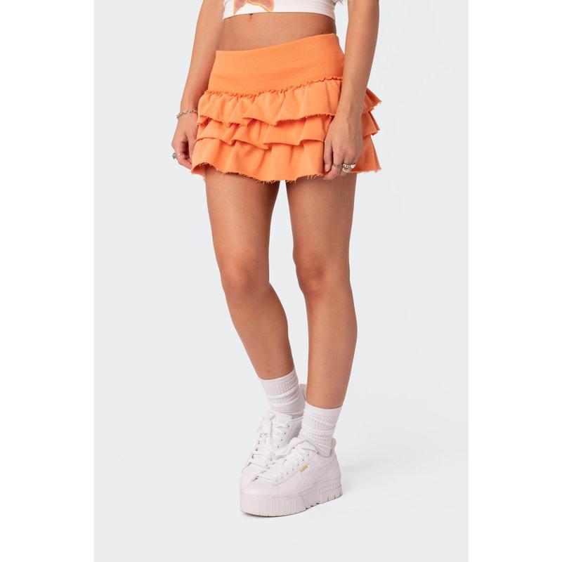 Skirt is super cute but be careful because it is pretty short and there are no built in shorts. I had to wear spandex underneath which isn’t a problem but I kept having to pull my skirt down.