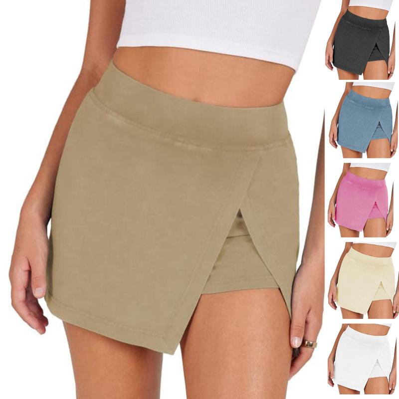 Design: This hot shot mini skort features a high-waisted design with front split sides, an elastic waistband, and a high-rise fit. It accentuates your body's curves and silhouette, making it easy to slip on