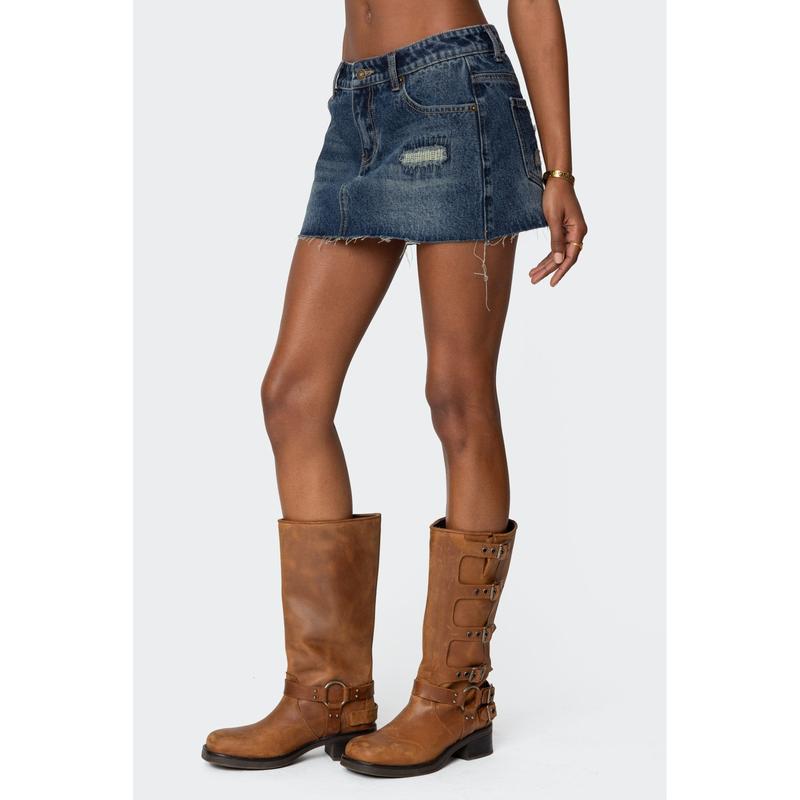 Hunter Distressed Denim Mini Skirt
