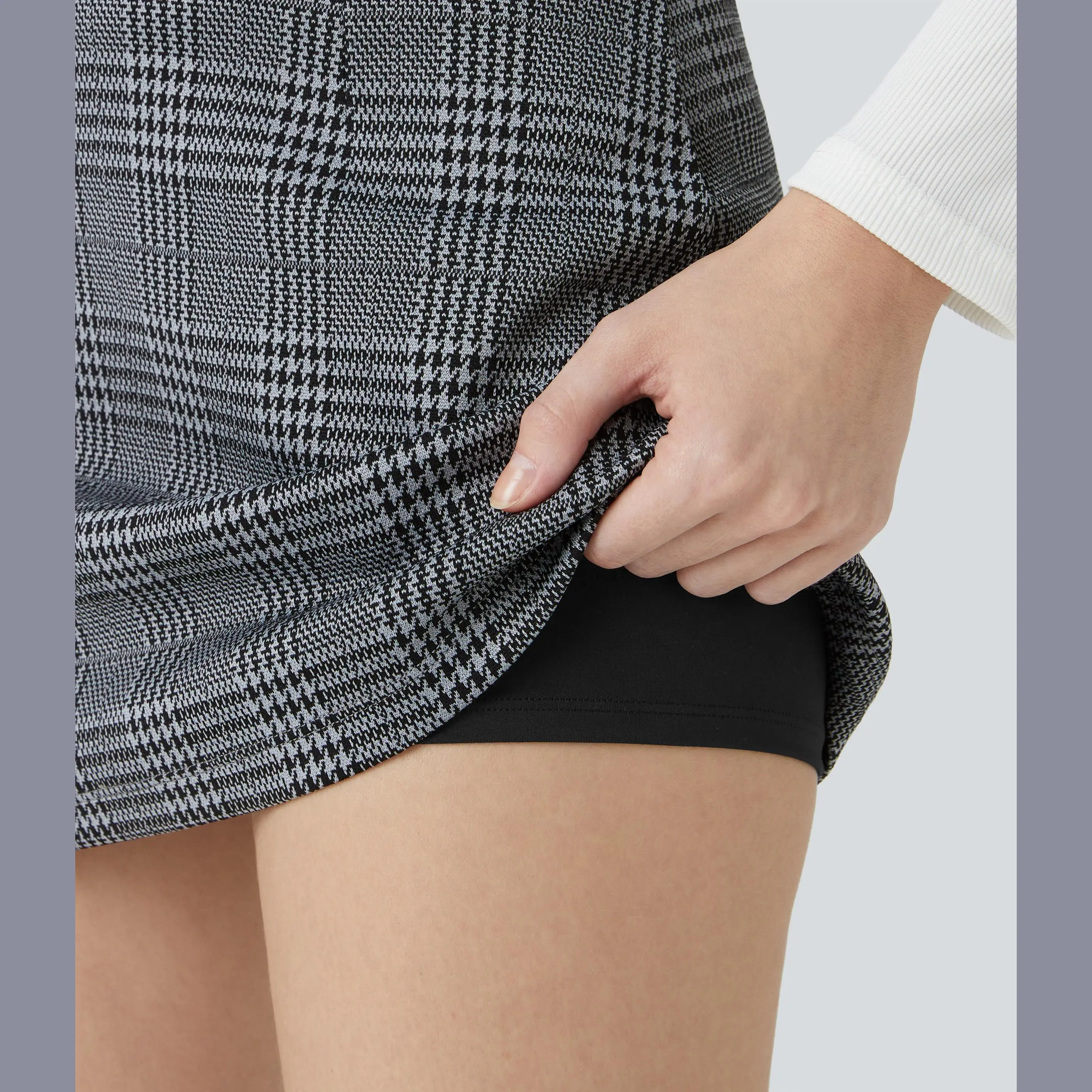 Halara High Waisted 2-in-1 Houndstooth Plaid Mini Work Skirt