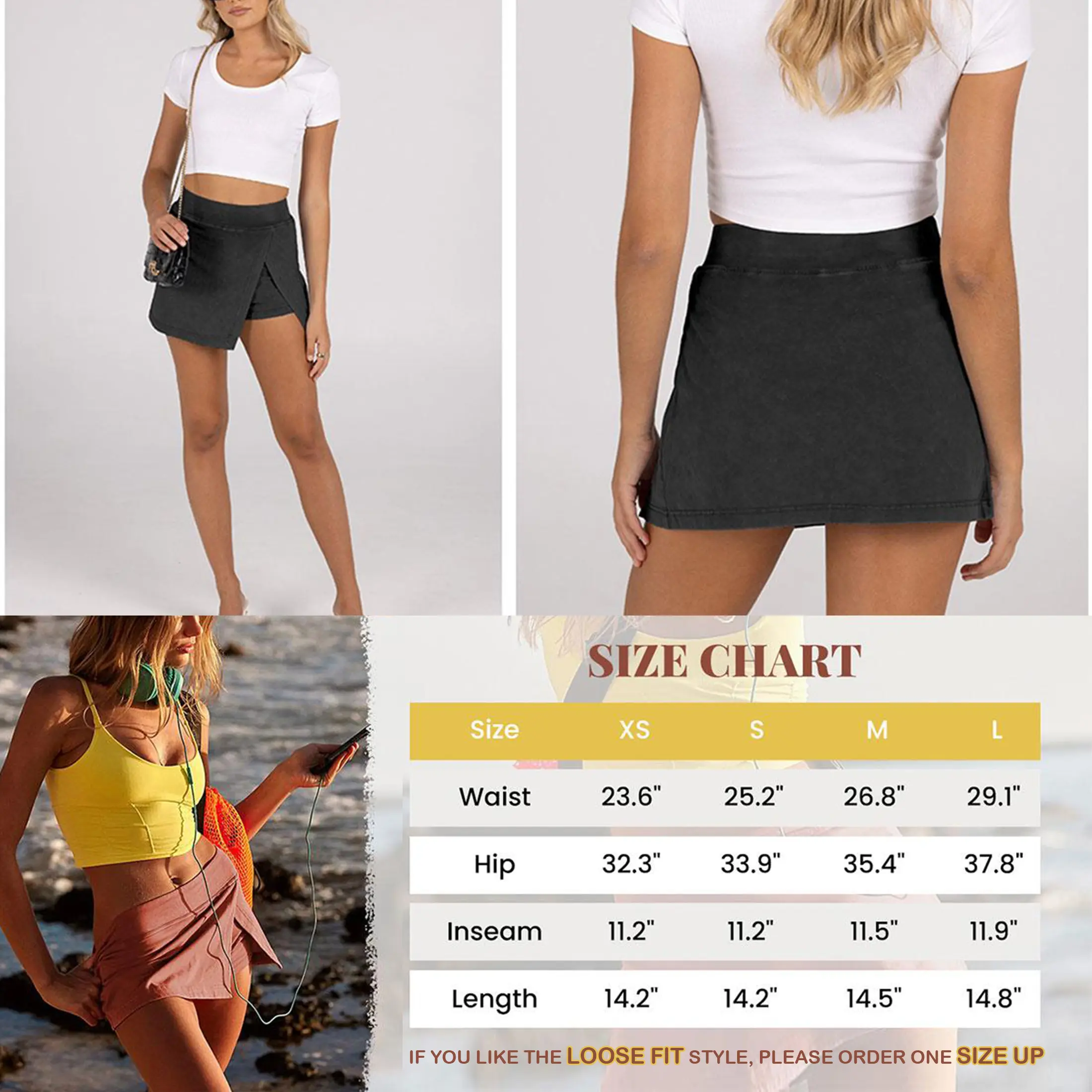 Design: Hot shot mini skort features with high waisted, front split side, elastic waistband, high-rise fit, show your bodies curvy and silhouette, easy to dress on