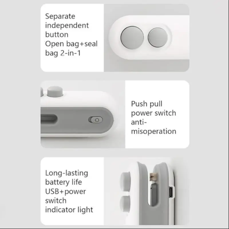 【Food Preservation】: Effectively seals snacks bags to keep your food fresh longer, extending shelf life.
