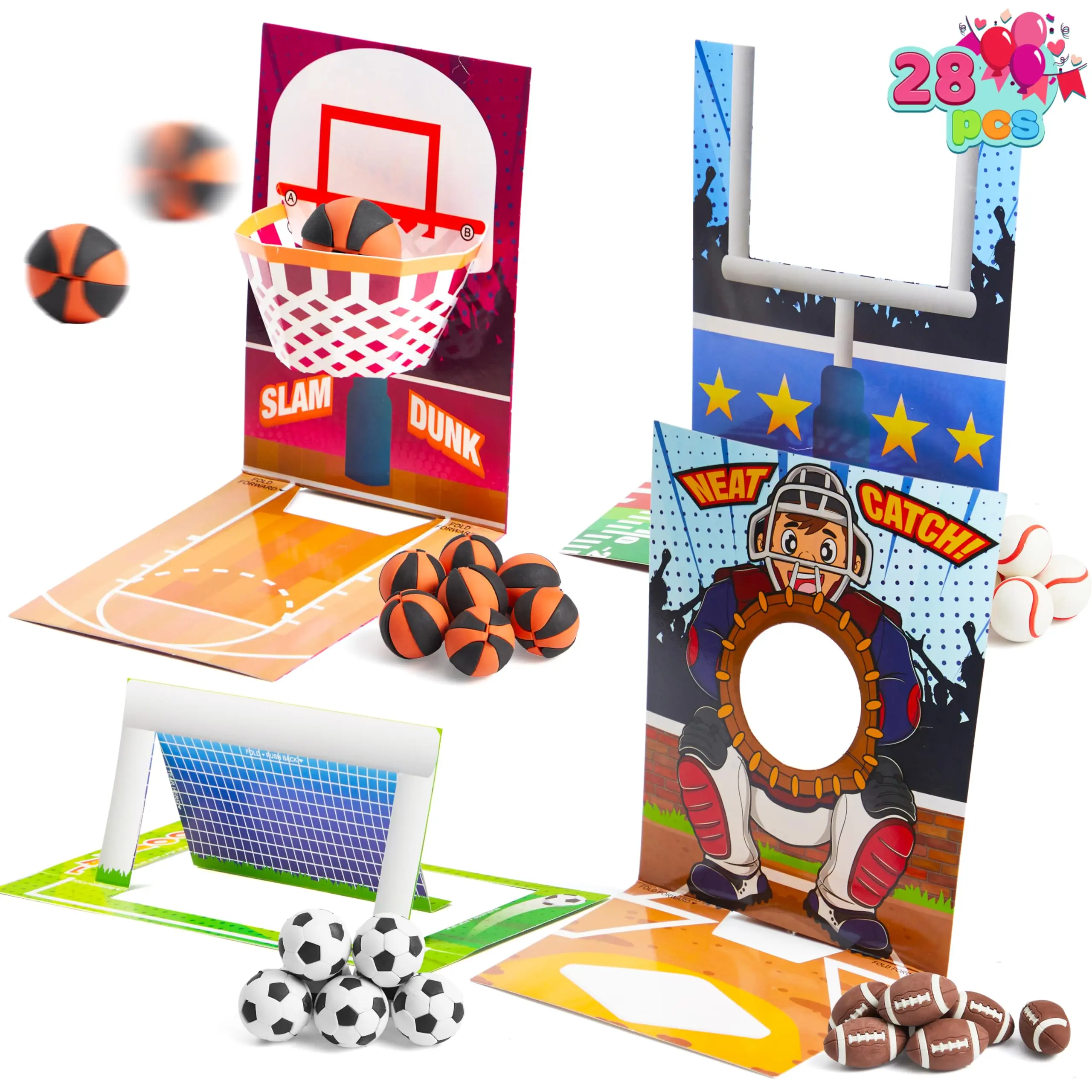 ·The Sports Game Erasers set includes 4 designs in cards, erasers, and PP packages. Children can engage in shooting activities using the ball-shaped erasers. 🏀