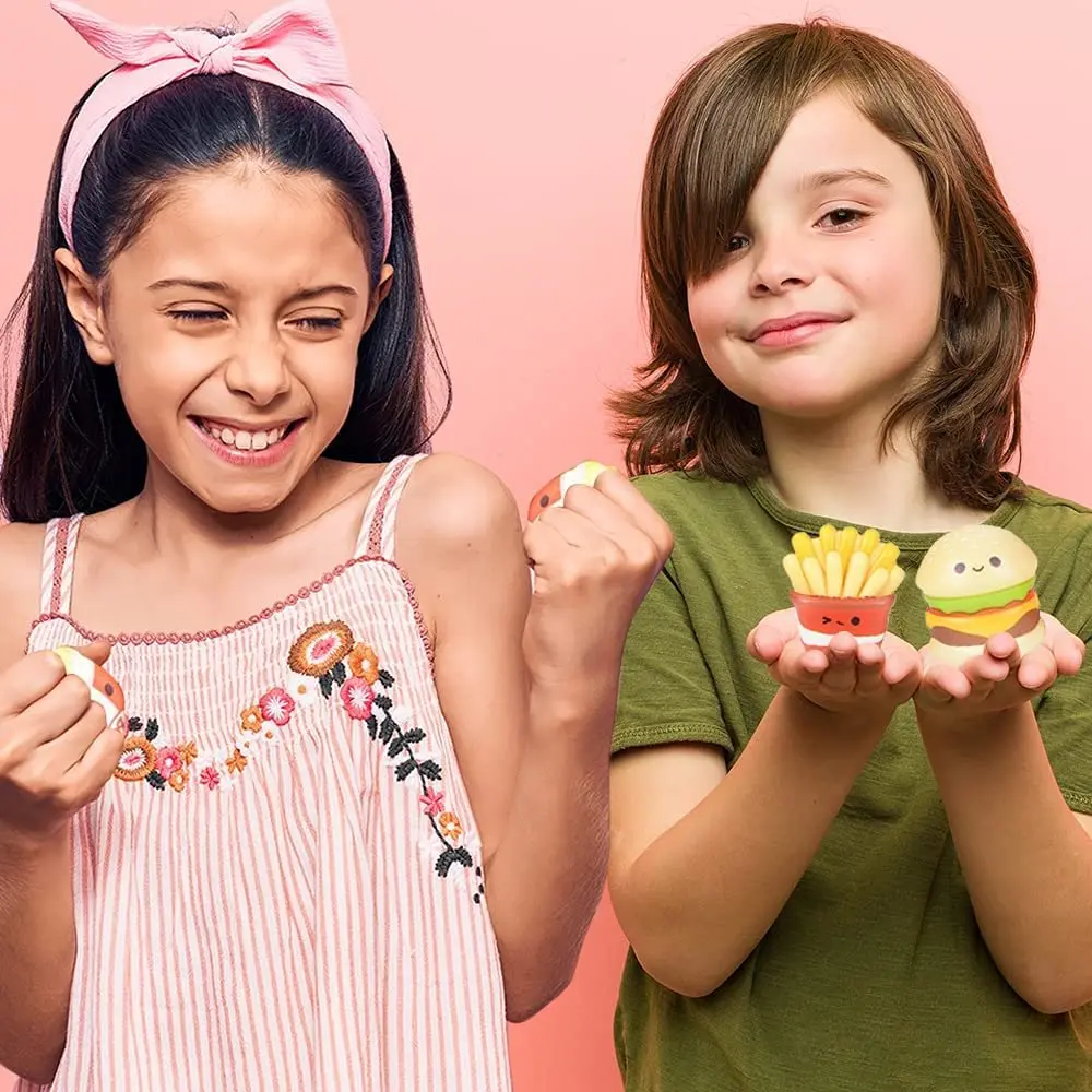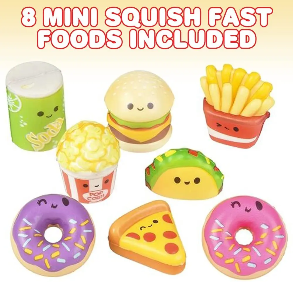 ·FLAVORSOME TOYS: What a great way to release tension with these squeeze food toys. This pack comes with a SET OF 8 mini stress toys that are scrumptious to look at but should not be eaten. This pack includes a soda can, popcorn, fries, donuts, pizza, hamburger, and a taco.