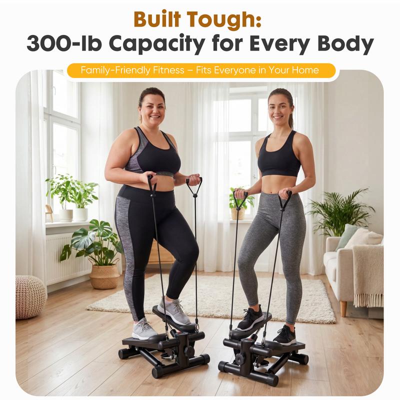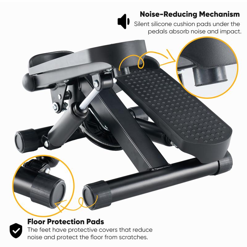 ·Works Super Quietly: This mini twist stepper with resistance bands utilizes ultra-quiet hydraulic cylinder hydraulic drive system, also there has a silent silicone cushioning pad under the foot pedals to make the stepping quiet and gentle.