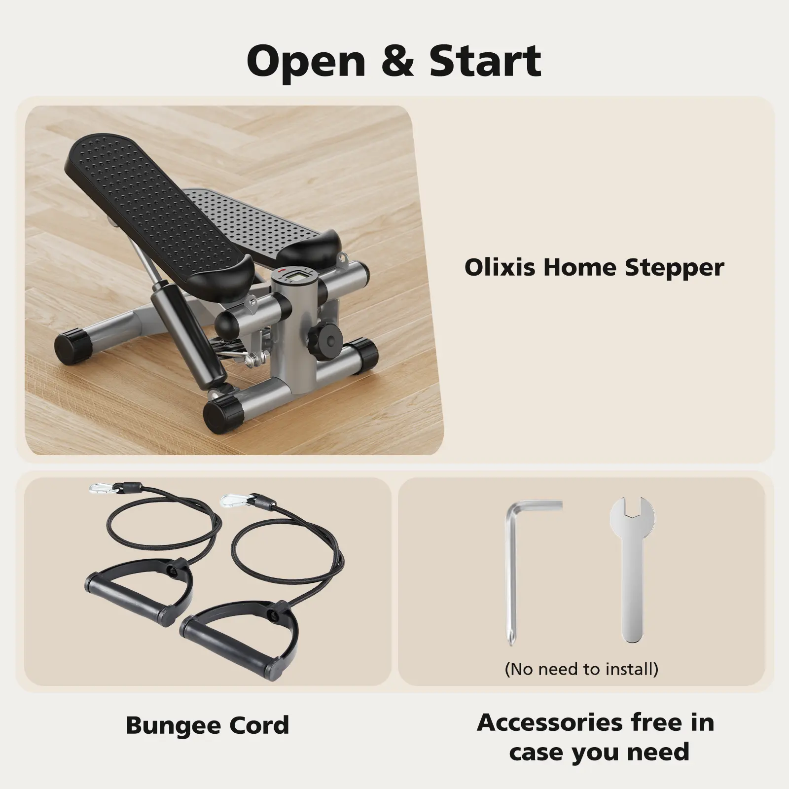 ·Full Body Workout: The stair stepper promotes lower limbs' muscle strength and accelerates fat burning by continuous stepping. Fitted with removable resistance bands to exercise your arms, shoulders, chest and back.