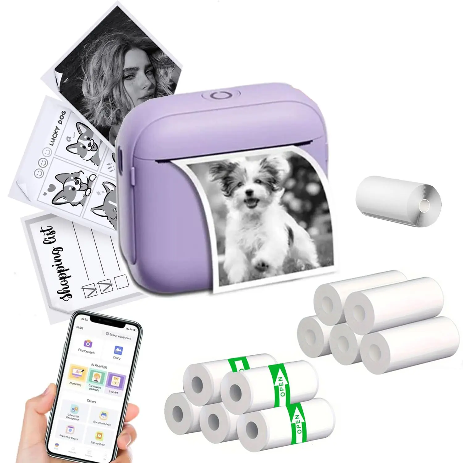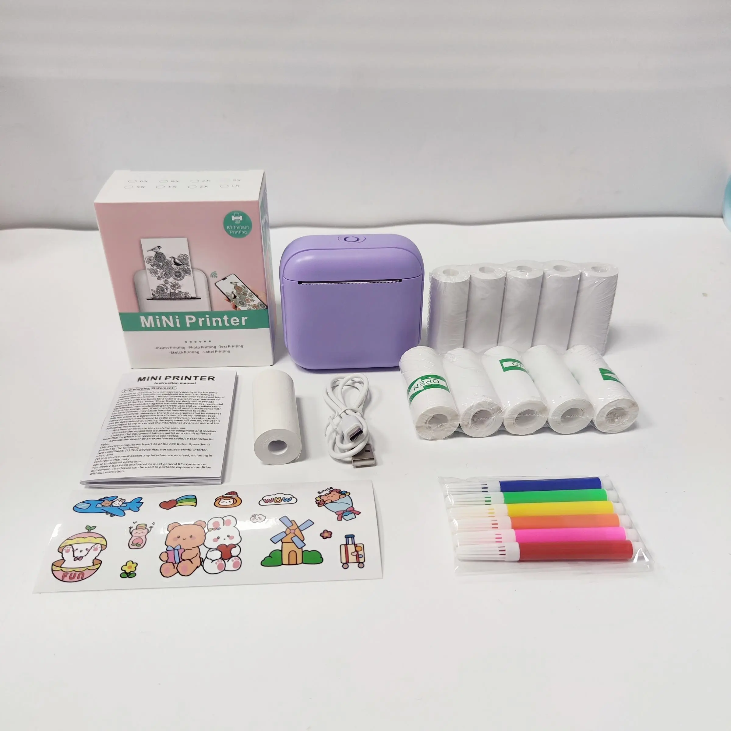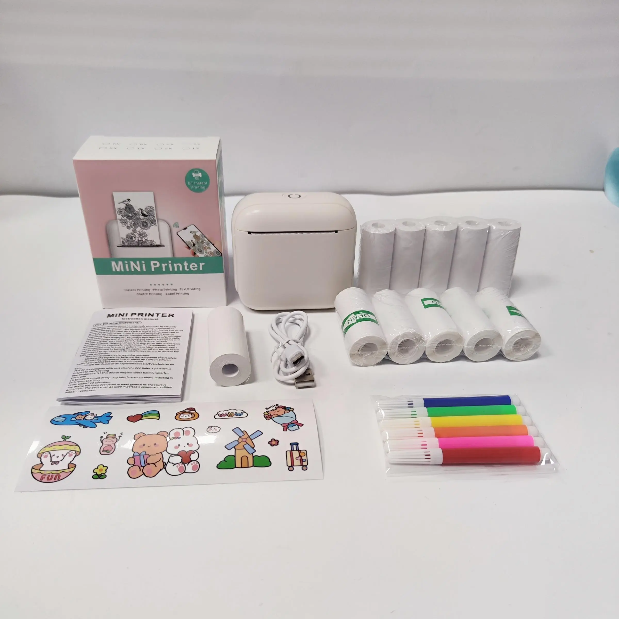 Cream, Printer+11 Roll Paper+Pen+Sticker+Charging Cable