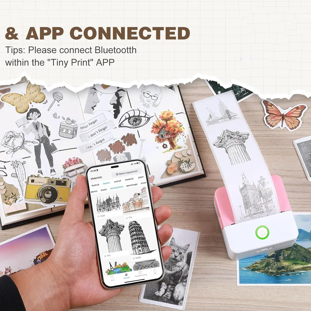Purchased for Bible journaling. The amount of paper included was great! It is black and white, which is exactly what I needed since I wanted to be able to color what I printed and then cut it out and glue it into my Bible. The app is amazing. There are so many options on it, and it is easy to use.