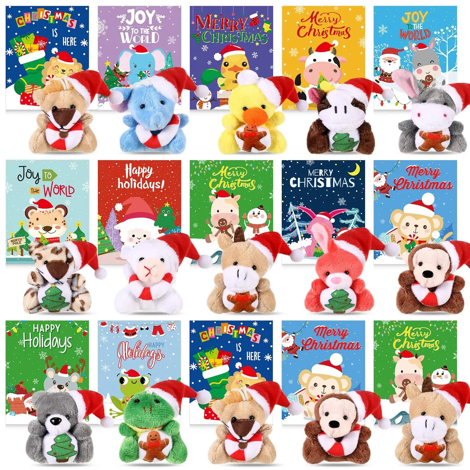 ·Charming Christmas Set: experience the complete celebration feeling with our Christmas set, which includes 15 Christmas cards and 15 small Christmas stuffed animals, the combination of these two allows for a variety of fun activities