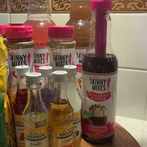 None too happy with this purchase. I otdered Syrup too and it showed only the pump for 4.99 and $12.95 shipping! This pump costs me $20 and didn’t even have the syrup! I ordered The salted caramel. I tried to immediately cancel the order! Biggest rip off ever! I was Only going to be refunded $5.34!