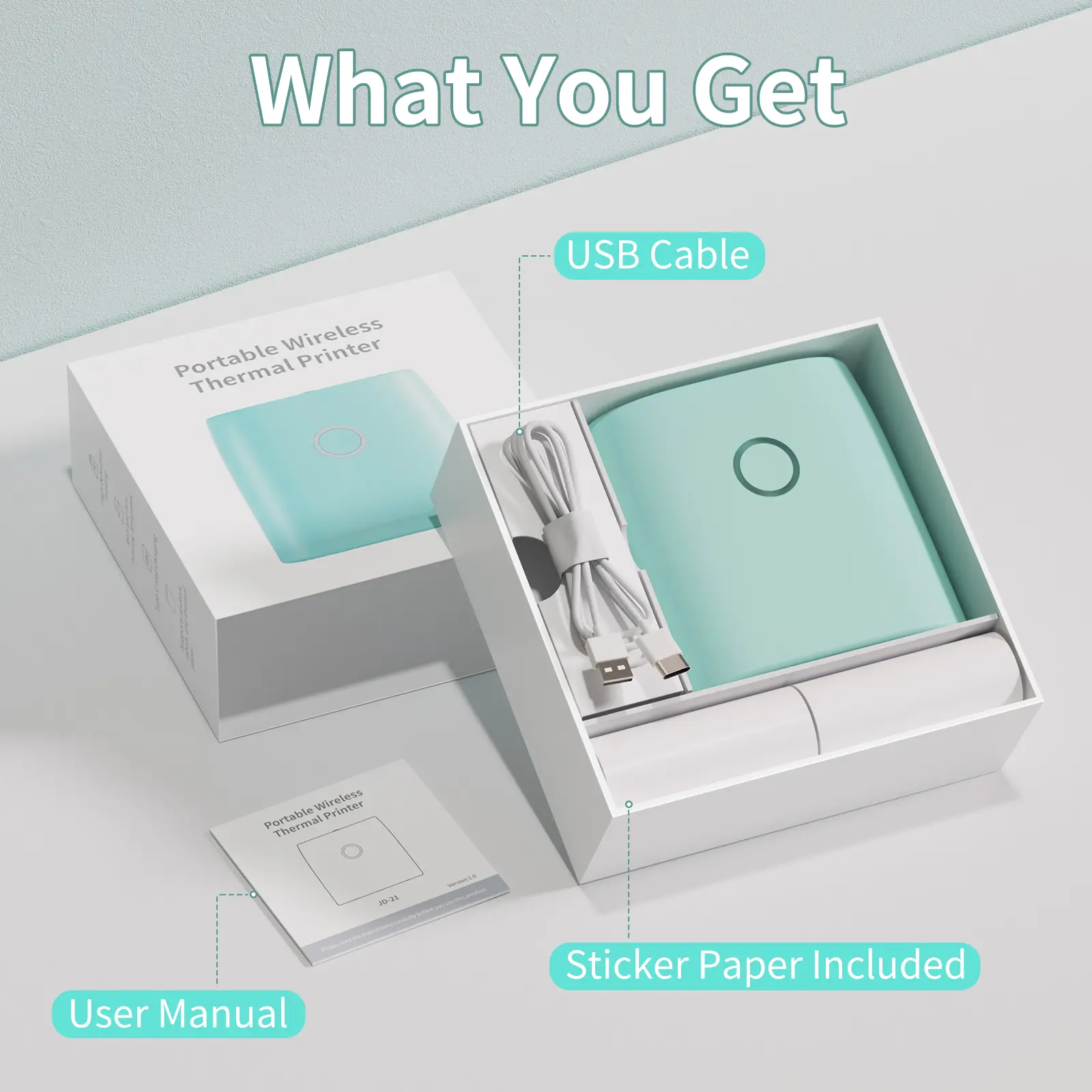 ·Inkless Sticker Printer-Enjoy inkless printing with our cost-effective thermal technology,eliminating the need for ink, toner,or ribbon,while ensuring quiet operation.with just one click,print effortlessly,saving you both time and expenses