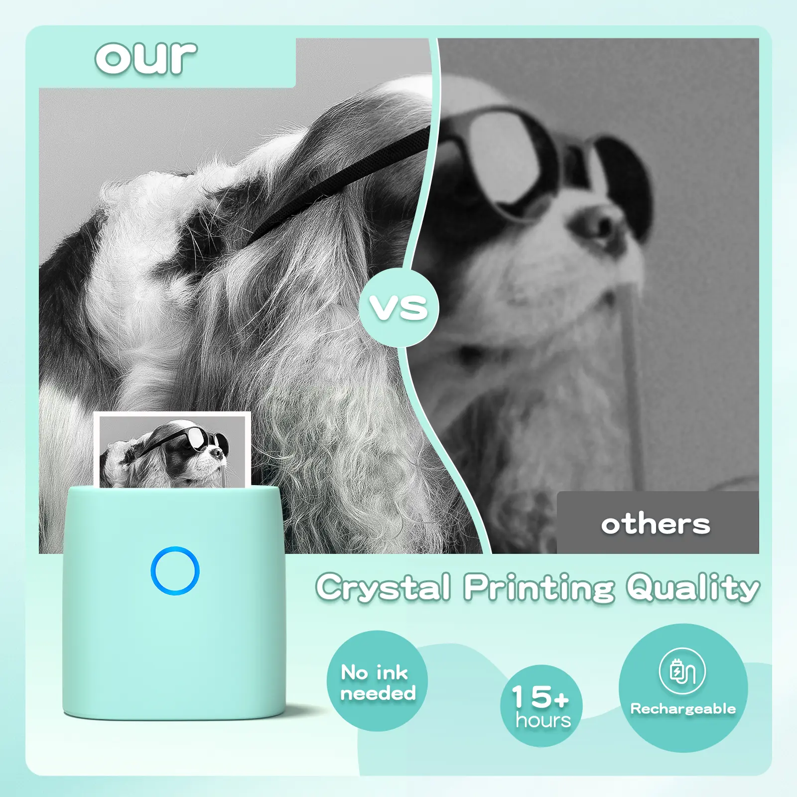 ·High Printing Quality-Experience vivid printing quality with our mini mobile Printer,delivering stunning high-resolution images with vivid detail.Enjoy uninterrupted printing for up to 15 hours on a single charge,with standby lasting about a week,ensuring you always have printing power when you need it