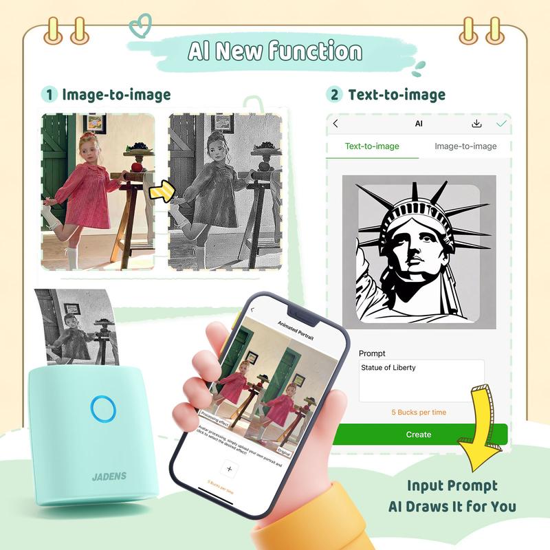 ·Multipurpose Funny Printer-The portable mini printer serves a variety of purposes,making it ideal for work plans, office assistance,photos,memos,greeting cards,meeting notes,study notes,shopping lists,and receipts.It's suitable for offices,students,amateur archivists,and busy moms etc