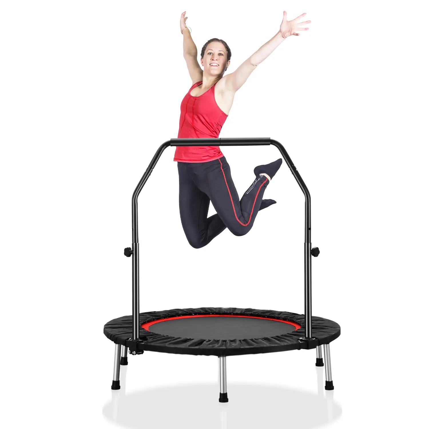 5. Mini Trampoline, Foldable Fitness Trampoline, Adjustable Foam Handle, Stable & Quiet Exercise Rebounder for Adults
