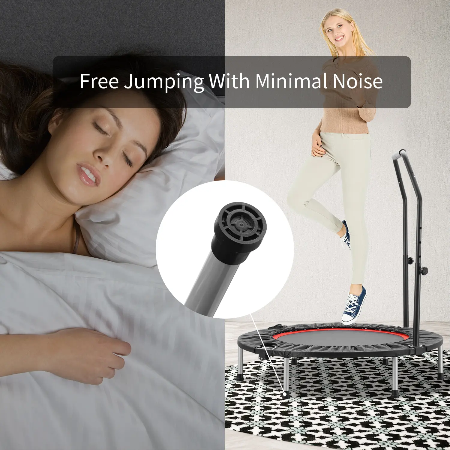 ·Quiet Operation: 95% less noise compared with other trampolines. Perfect for workouts at home without disturbing others.