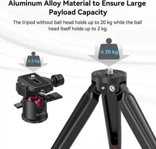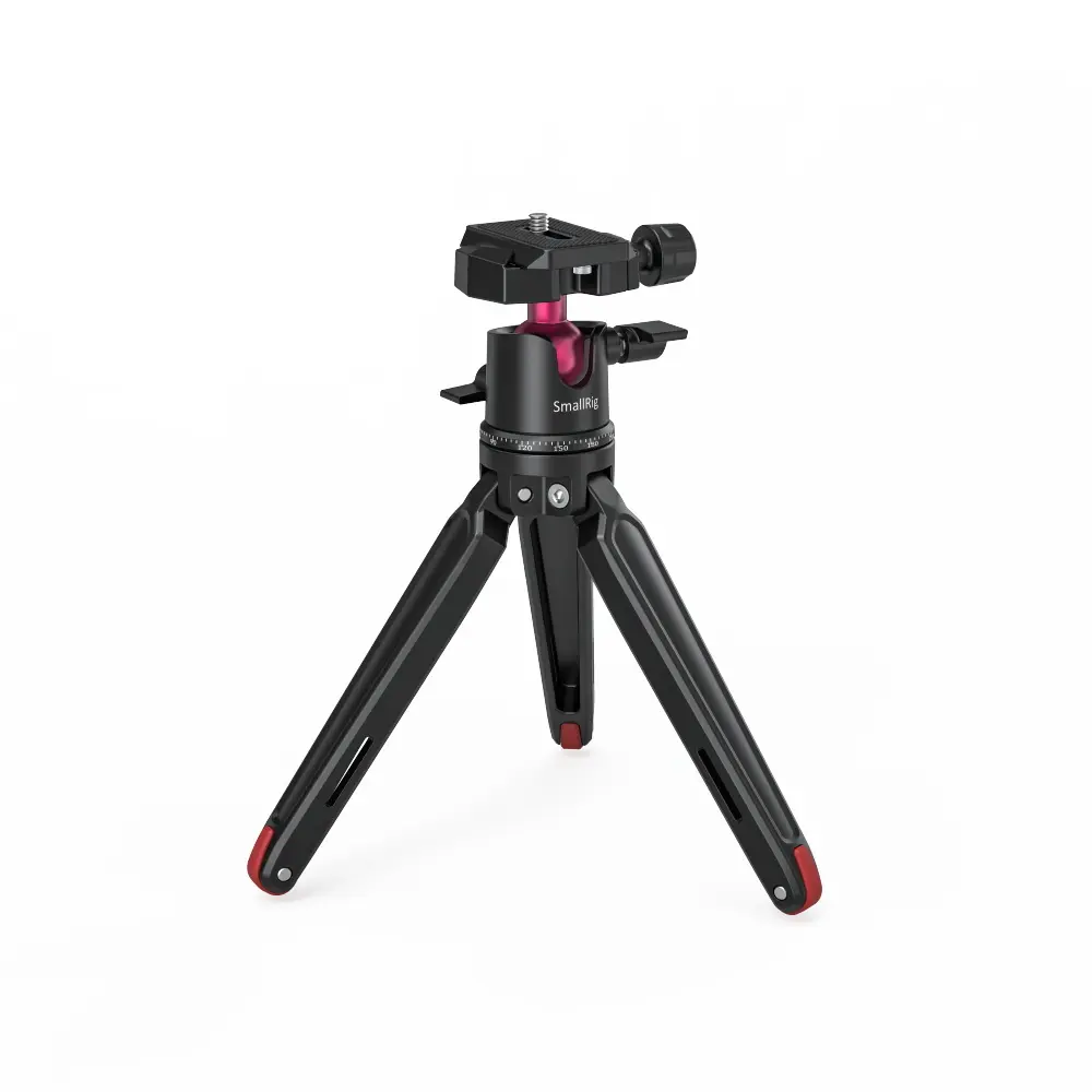 SmallRig Tabletop Mini Tripod with Panoramic Ball Head BUT2664 is the perfect mini tripod for compact DSLRs, mirrorless cameras, smartphones, action cameras, and other devices, and can also act as a grip for handheld shooting. The tripod without ball head holds up to 20kg while the ball head itself holds up to 2kg. It’s solid and secure, and the rubber feet guarantee a stable and slip-free foundation on any surface. The ball head with accurate calibration support 360° panoramic rotation for panoramic shooting, -90°/+45° front tilt and -50°/+50° lateral tilt for multi-angle adjustment including horizontal shooting and vertical shooting. It comes with a standard Arca-Swiss plate, which is compatible with other Arca-Swiss clamps to ensure a quick mount/dismount of your device.