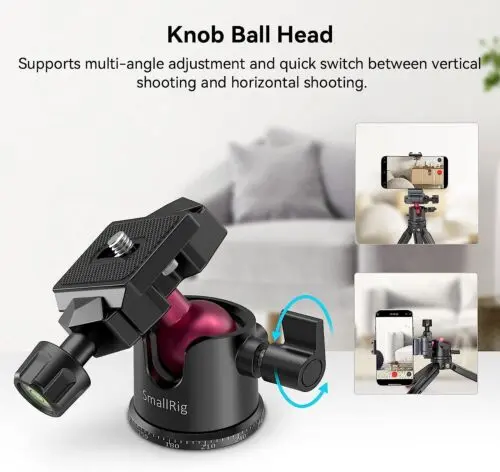 3. Ball head with knob supports multi-angle adjustment and quick switch between vertical shooting and horizontal shooting.