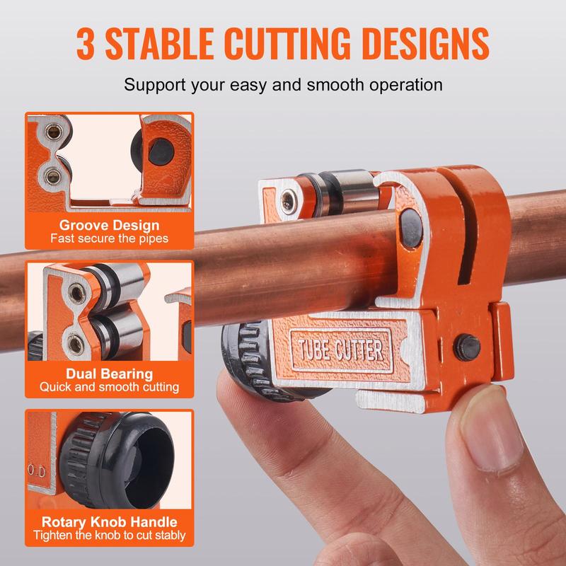 • Widely Applicable: VEVOR 1/8" - 1-1/8" mini pipe cutter is specifically designed for narrow spaces and small-diameter metal pipes. Its compact and lightweight body is convenient to carry and operate, without being limited by space constraints. A must-have for HVAC, plumbing, construction, manufacturing, heating, air conditioning, electrical fields, and garage repair shops.