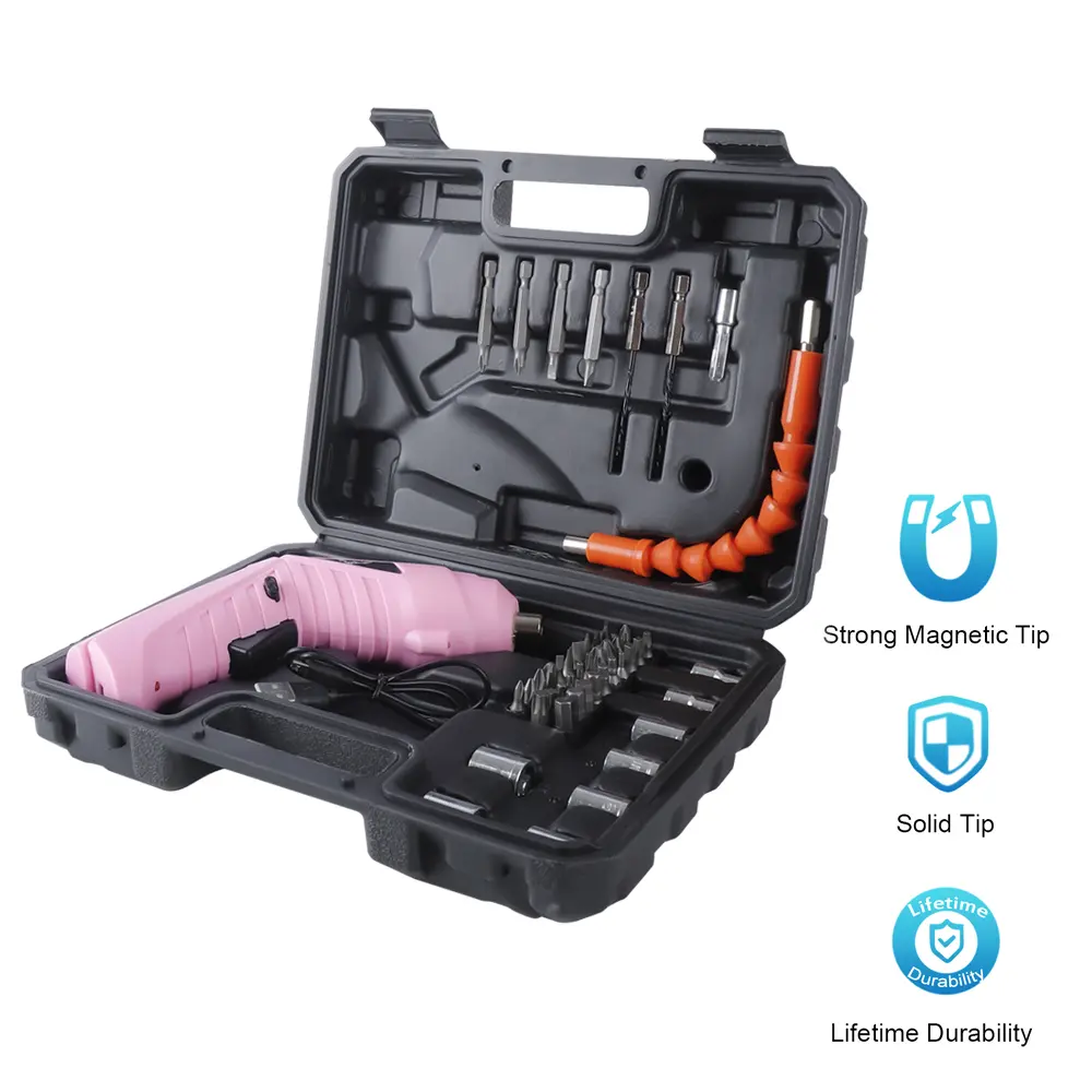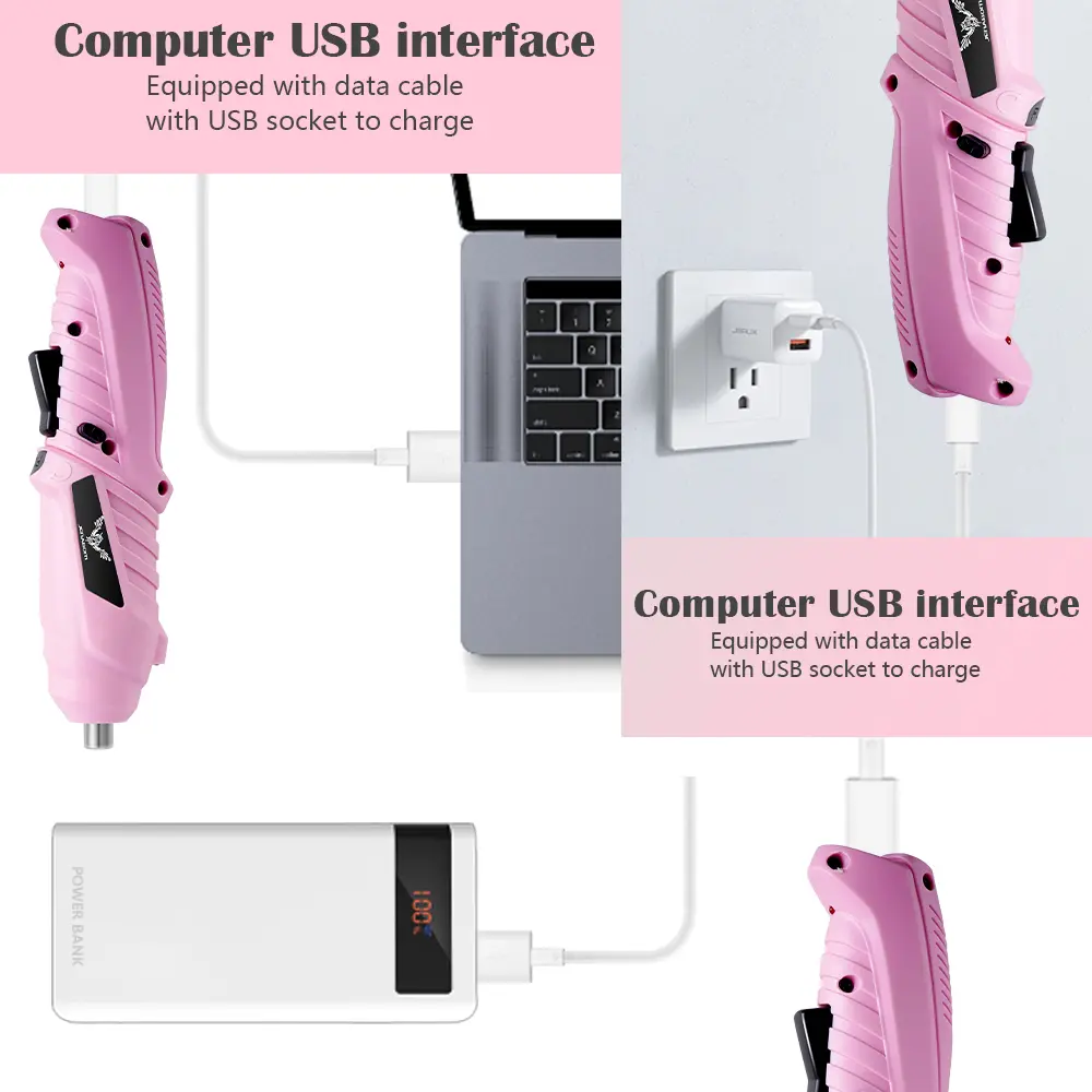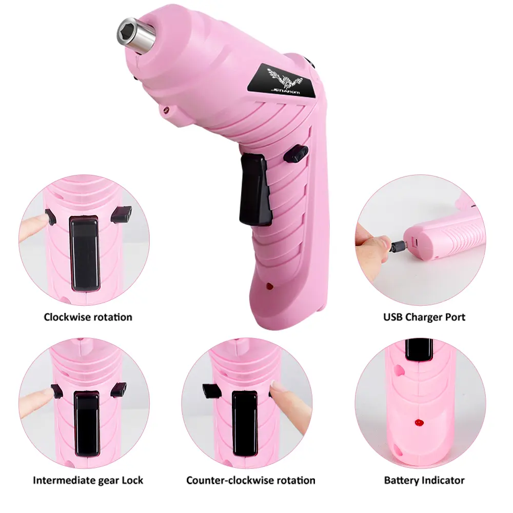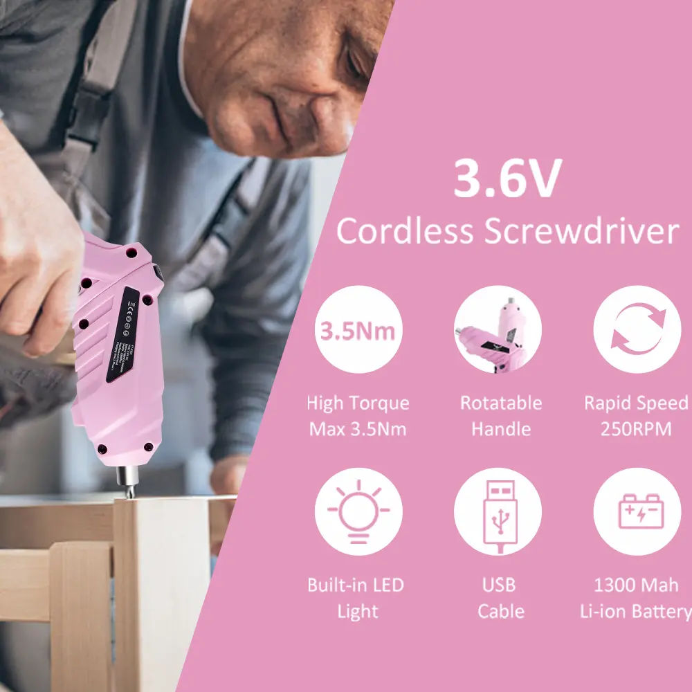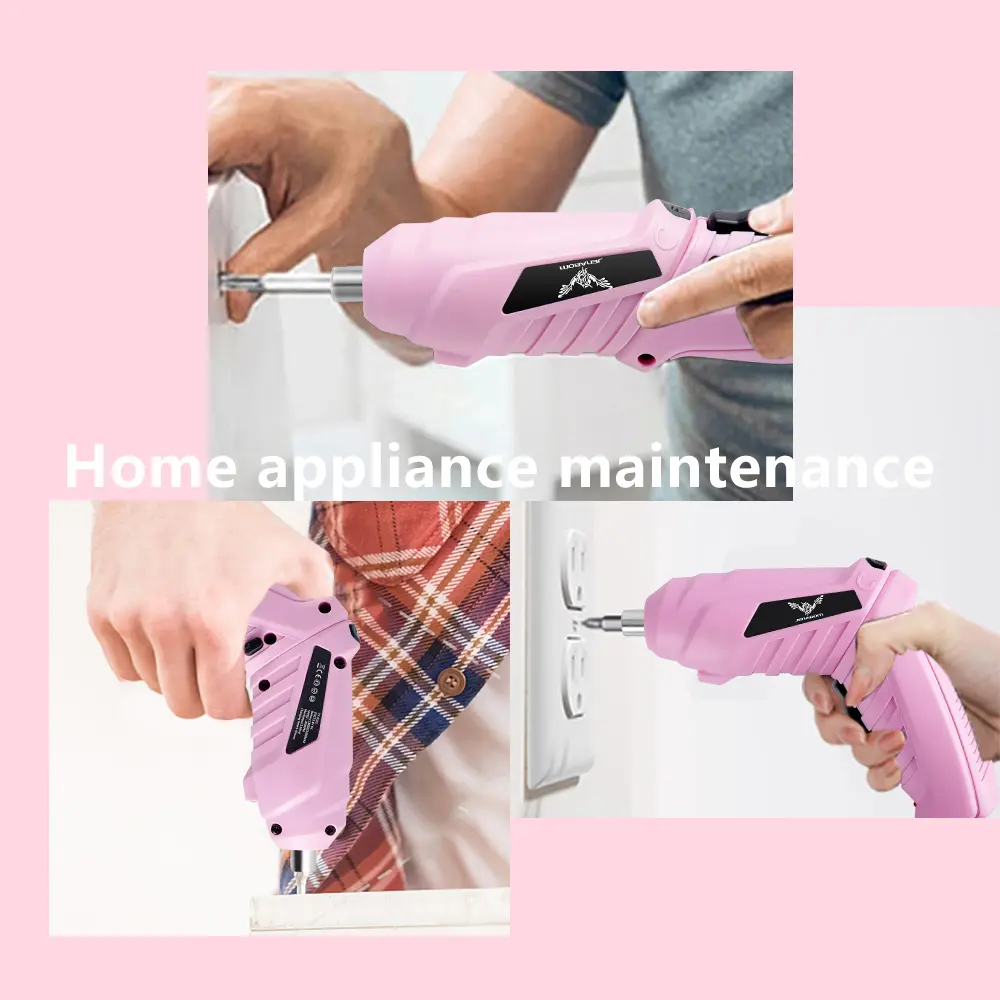 ·【Easy to use】Touch the switch of pink cordless electric screwdriver Rechargeable the NO/OFF switch to start work. Forward/Reverse Switch change the direction of rotation and tighten or loosen screws. suitable for daily home repair, fixing pictures, DIY projects, assembling furniture, office shelves, apartment cabinet, brackets, panels, covers, and so on.