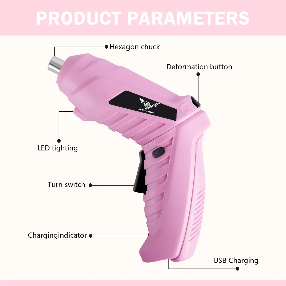 ·【Cordless Design & LED Lighting】①Pink Electric Screwdrivers Cordless: The cordless design allows you to carry out your electric drilling project anywhere, in any corner. Cordless Screwdriver ideal for screwing into tight spaces and blind holes;②When the electric drills cordless is working, the bright LED headlight will automatically light up, which can clearly point to the target, allowing you to work in the dark or Safer work in cramped workspaces.