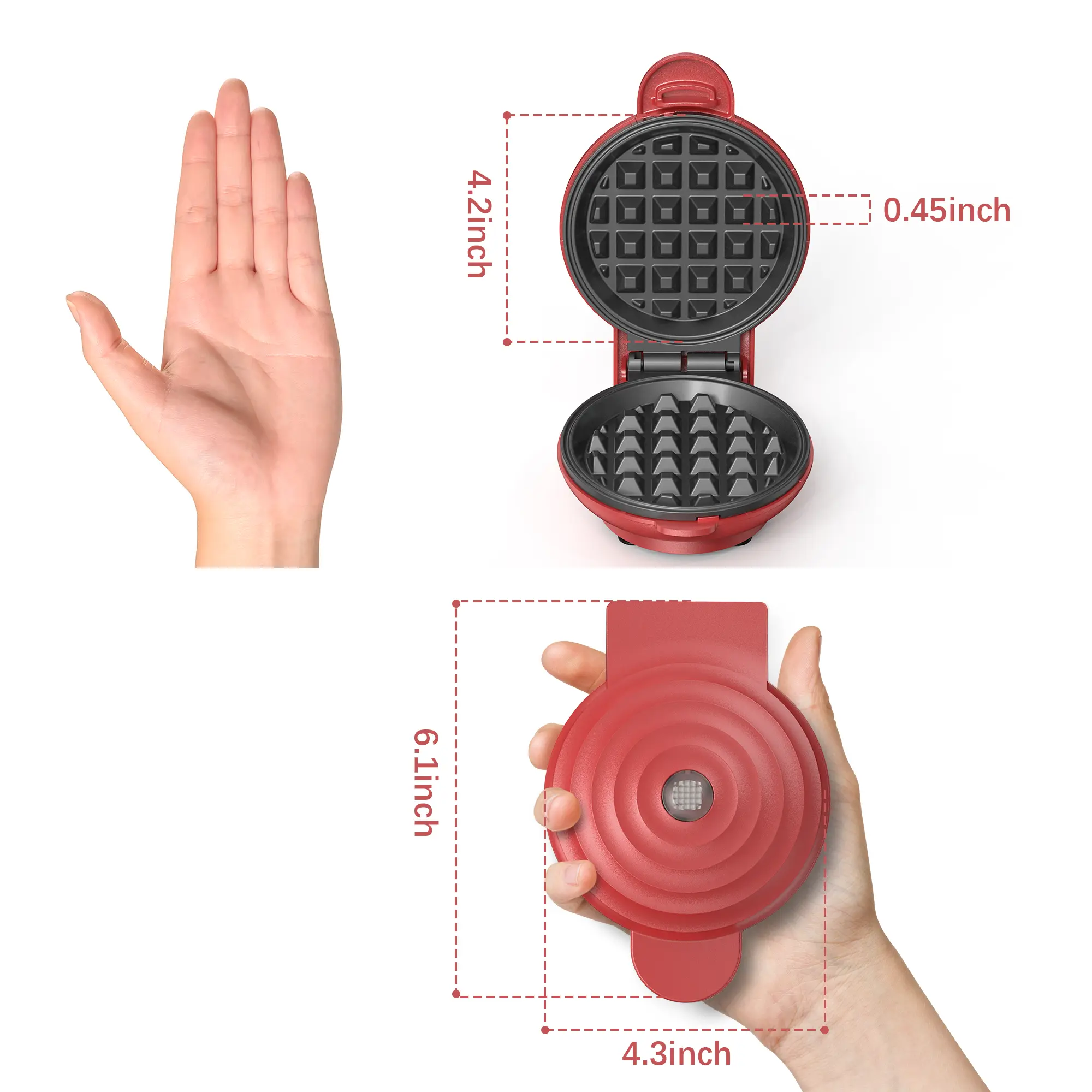 🍞 Crownful Mini Waffle Maker, 4 Inch, Palm-sized