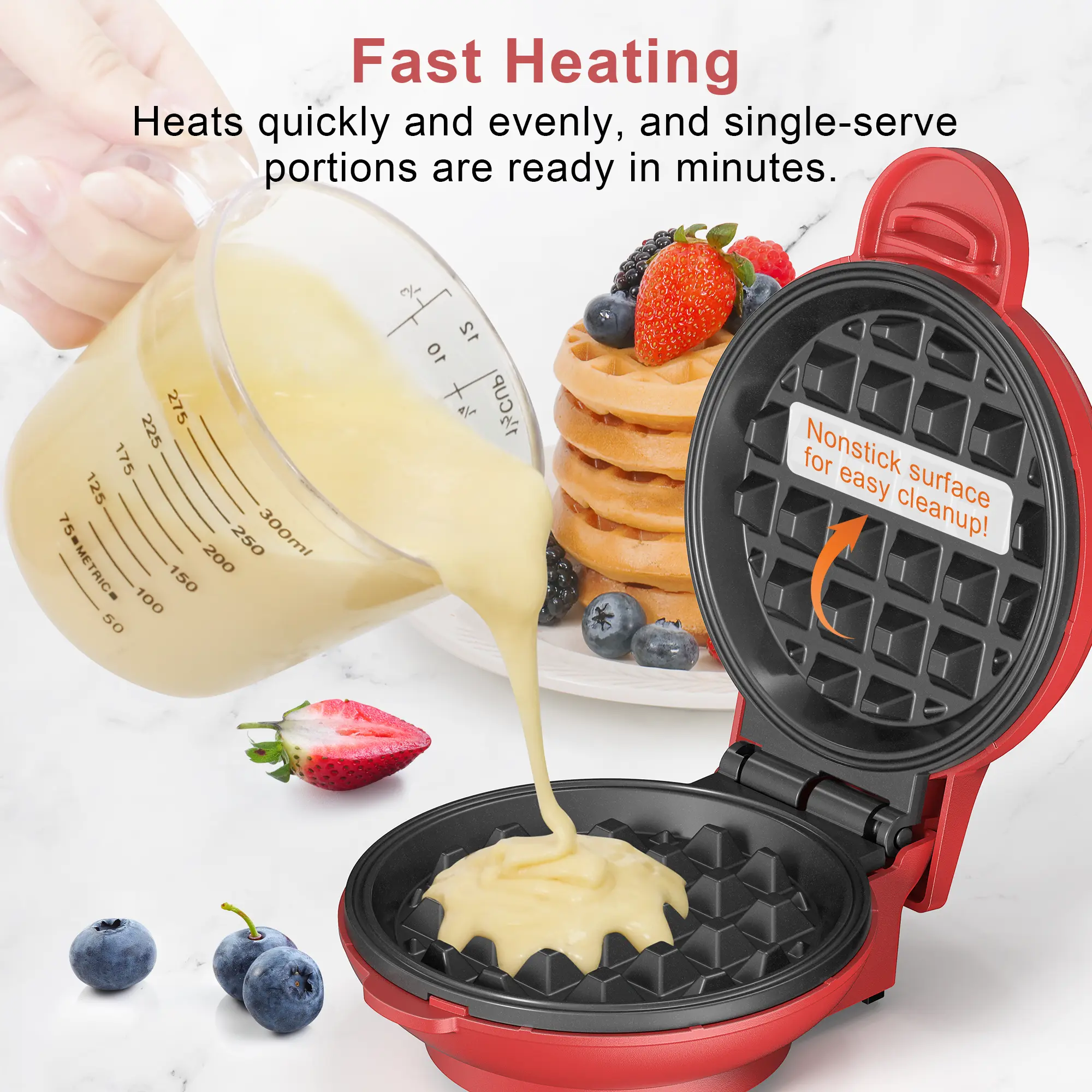 Just plug it in, wait for the indicator light, and start cooking on the non-stick plates. Its small, palm-sized design fits anywhere—ideal for dorms, RVs, or cozy kitchens. Available in sleek black, green, and red finishes, it adds a modern touch to any countertop. It also makes a wonderful gift for weddings, birthdays, or special occasions.