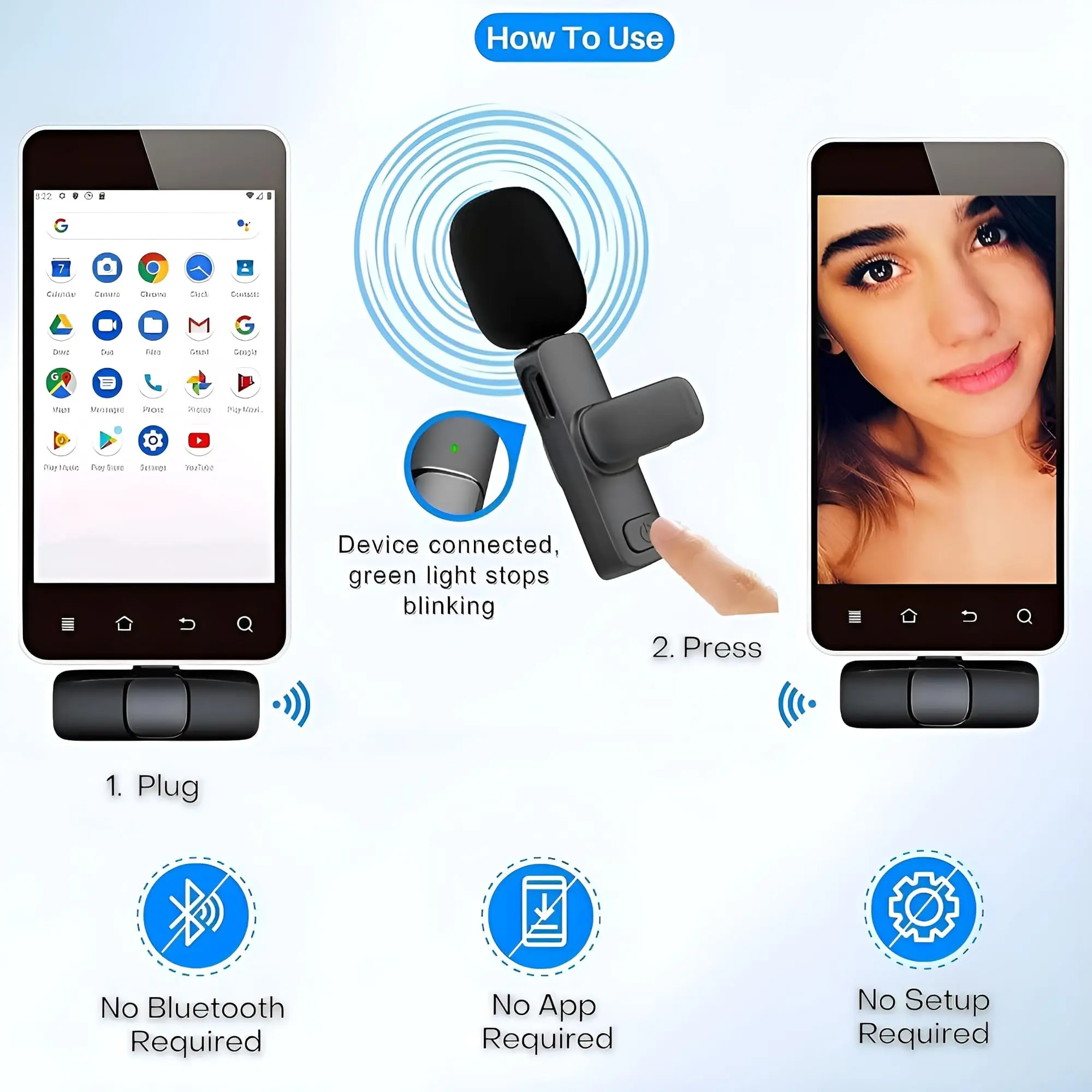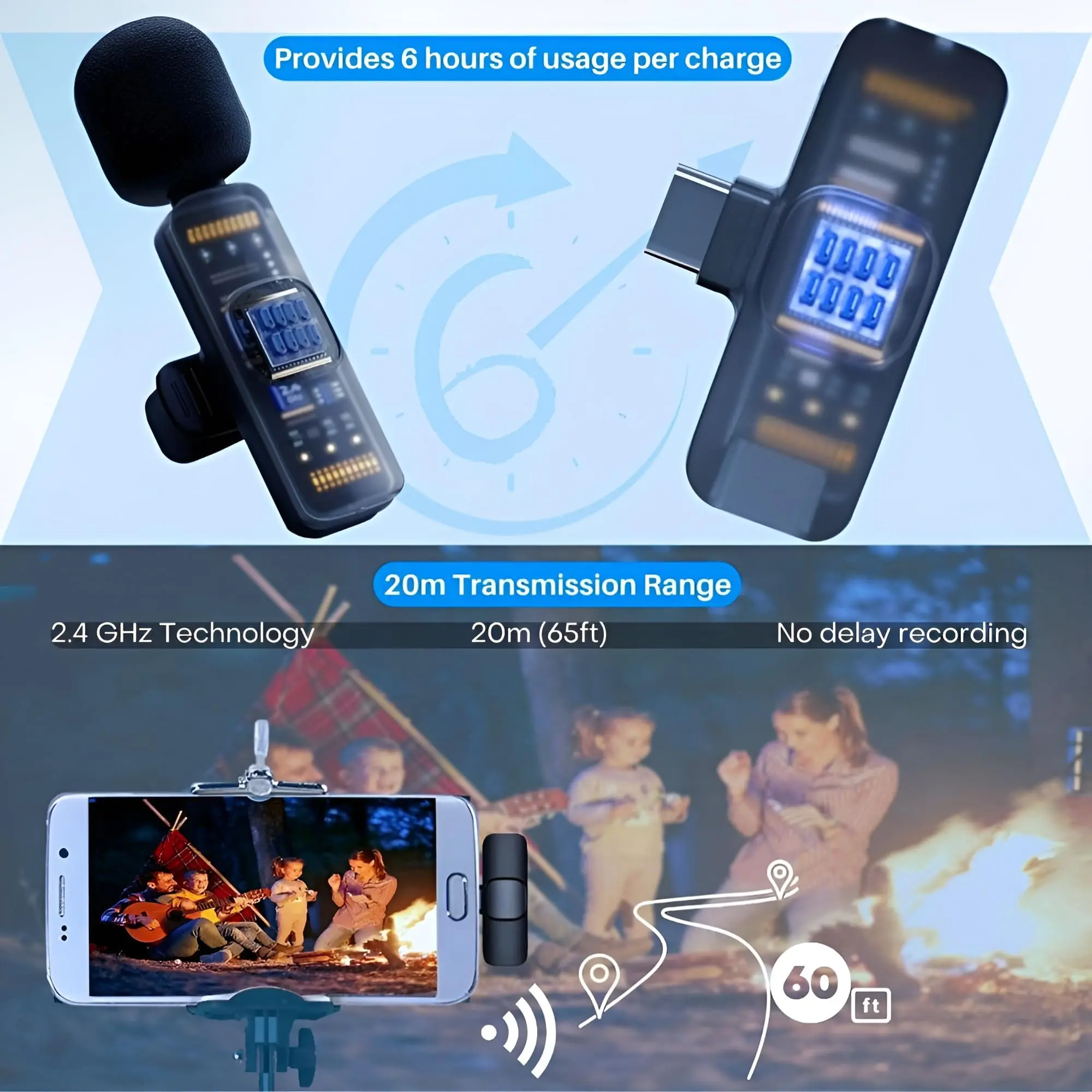 Whether you're live streaming, conducting interviews, teaching online, or creating engaging vlogs, these mics connect to your device in just 2 seconds, compatible with the latest iPhone 15, Galaxy S24, and other Type-C devices. Each pack includes two microphones, so youâre ready for dynamic two-person recordings.