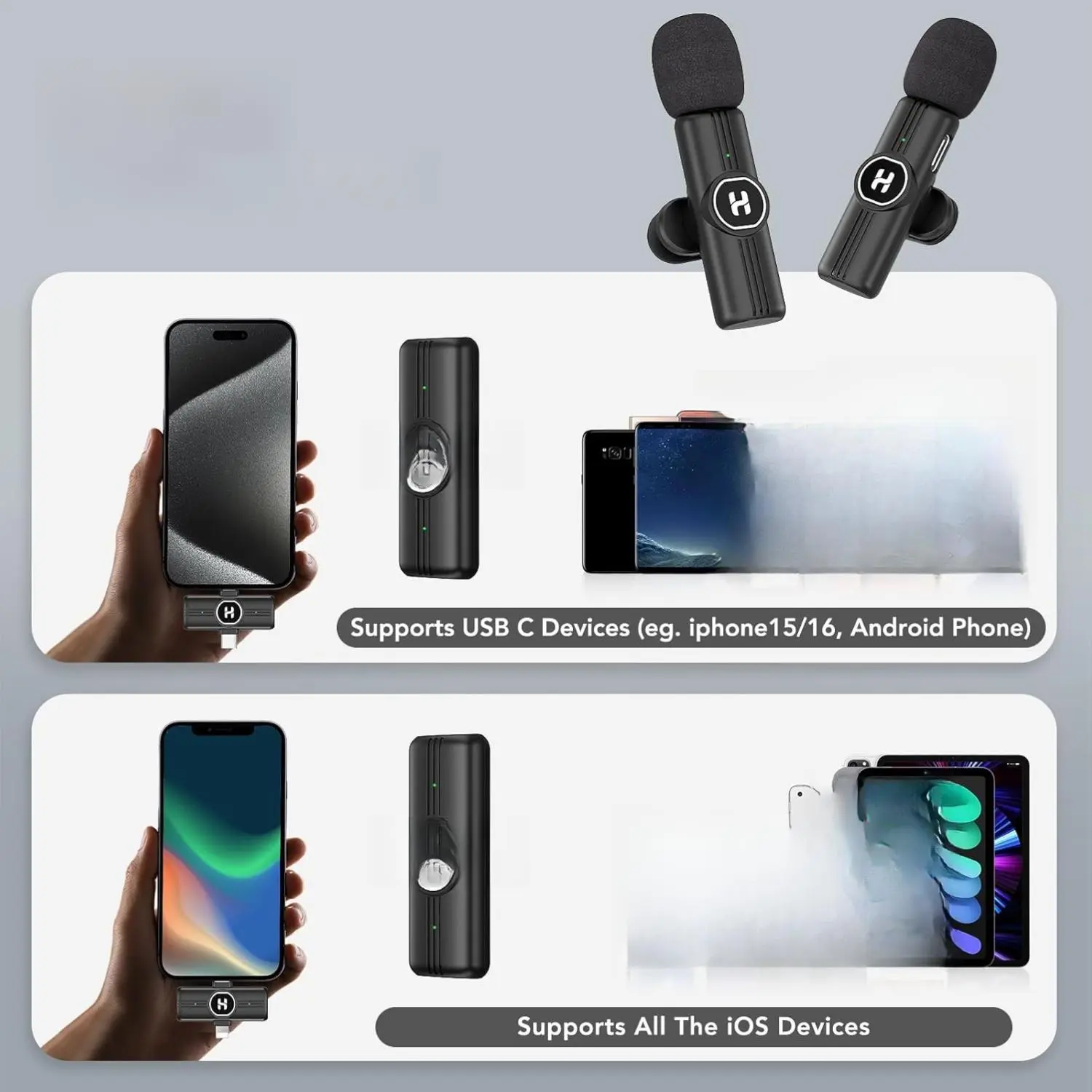 ·[Supports TypeC and iOS] With an apple adaptor, this bluetooth microphone supports all type C and lightning port devices, such as iOS (iPhone 15-16/ 15-16 Pro/ Pro Max, etc) and almost all Android Phones(Samsung, Google Pixel, OnePlus) and tablets. (Note: Please turn on the "OTG" function of your USB C device before pairing)