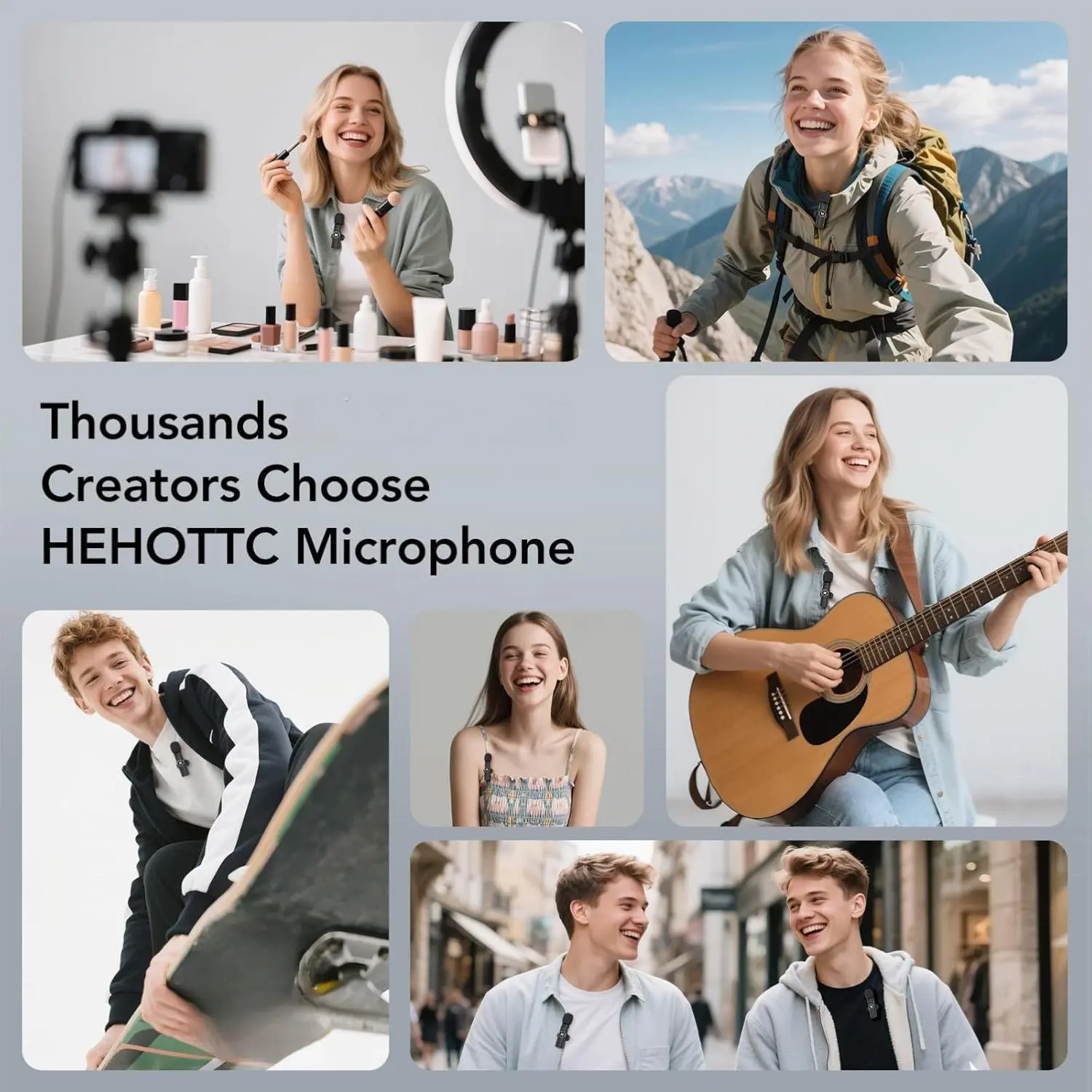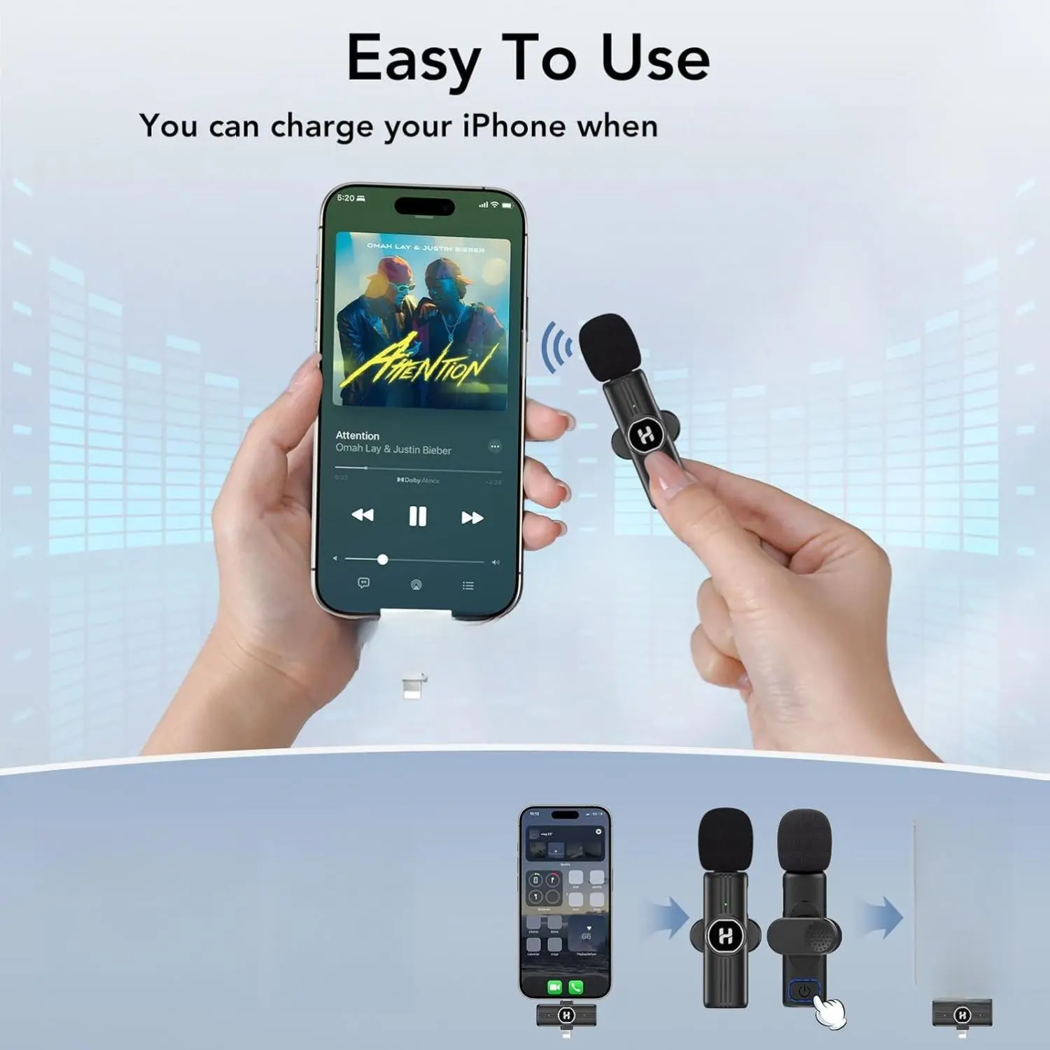 ·[Long Working Time and Rechargeable] A single microphone can work 6 hours when fully charged (1 hour). It means you can use two microphones for up to 12 hours. You also can use the wireless microphone for iphone when charging your device—no need to worry about battery life.