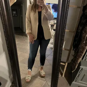 Love this blazer so much, it’s viral for a reason, it is amazing quality, it’s true to size, beautiful beige/khaki color, I’m a true size med and I ordered this in a med. For size ref I am a 36D, 165lbs, 5’4, med tops 8 jeans.