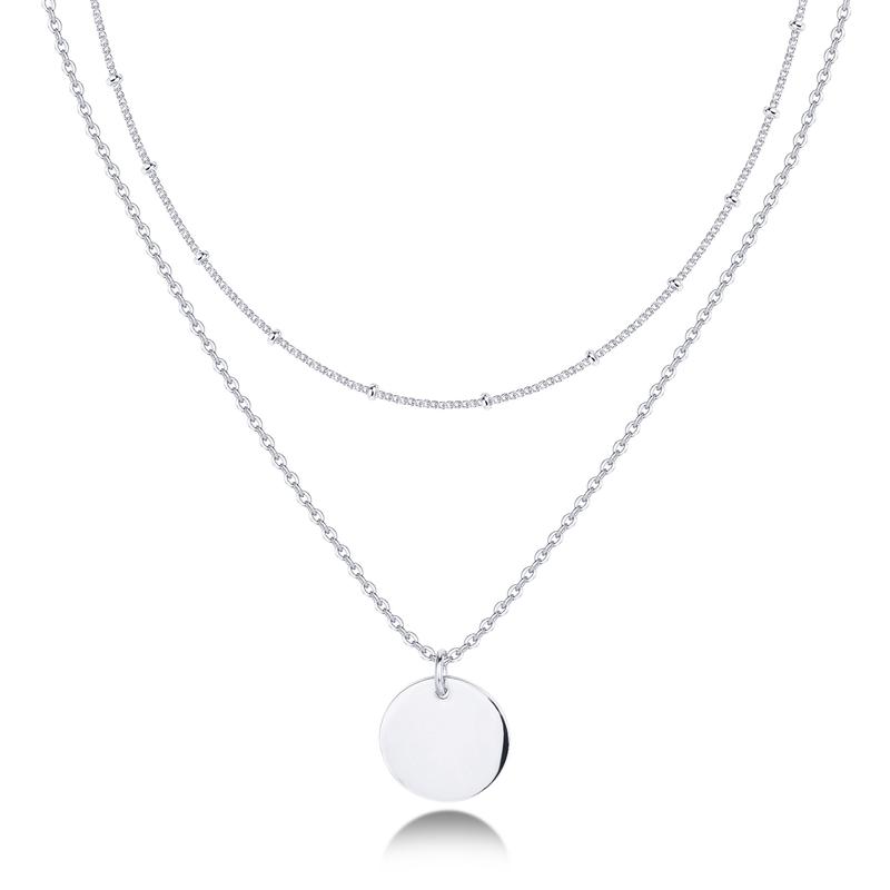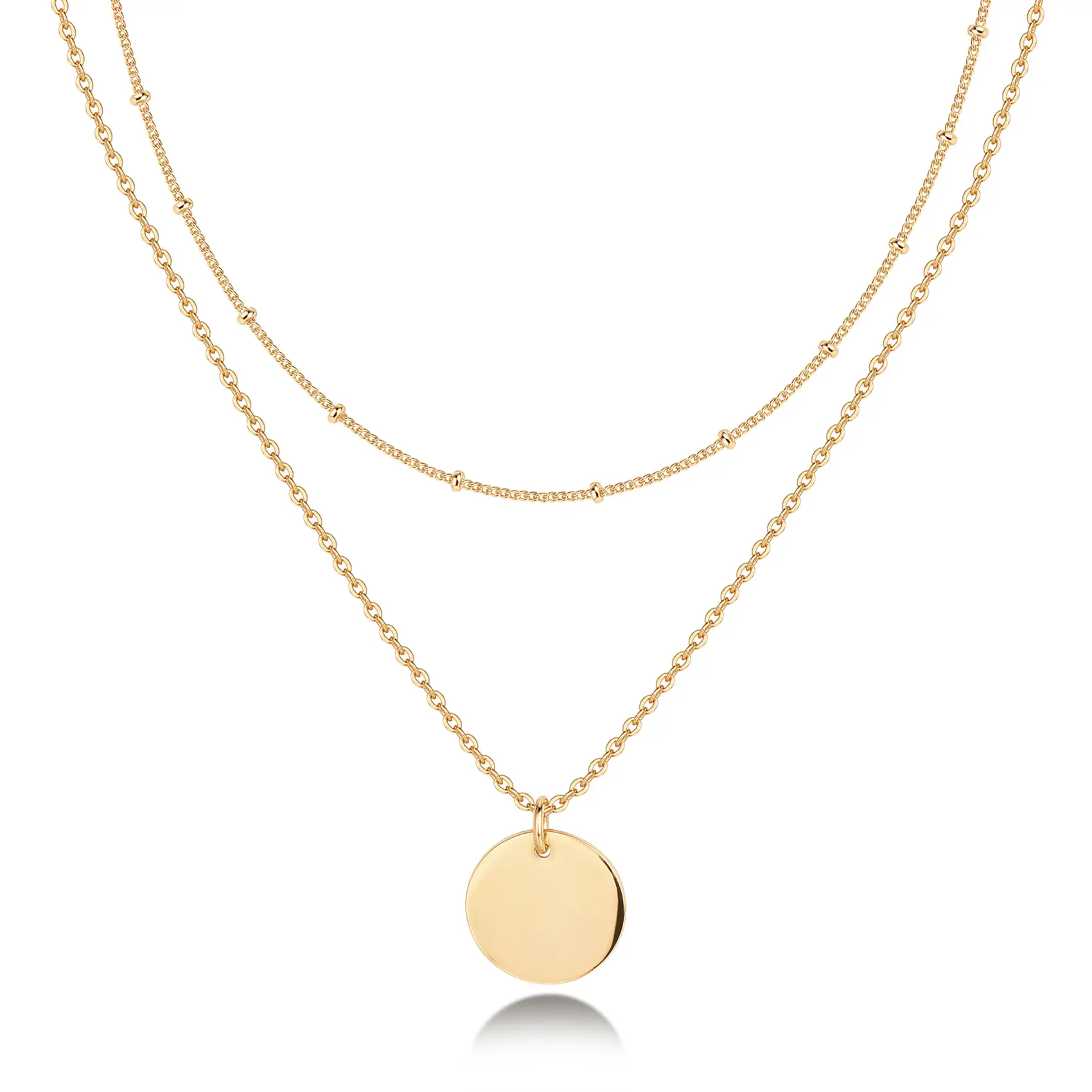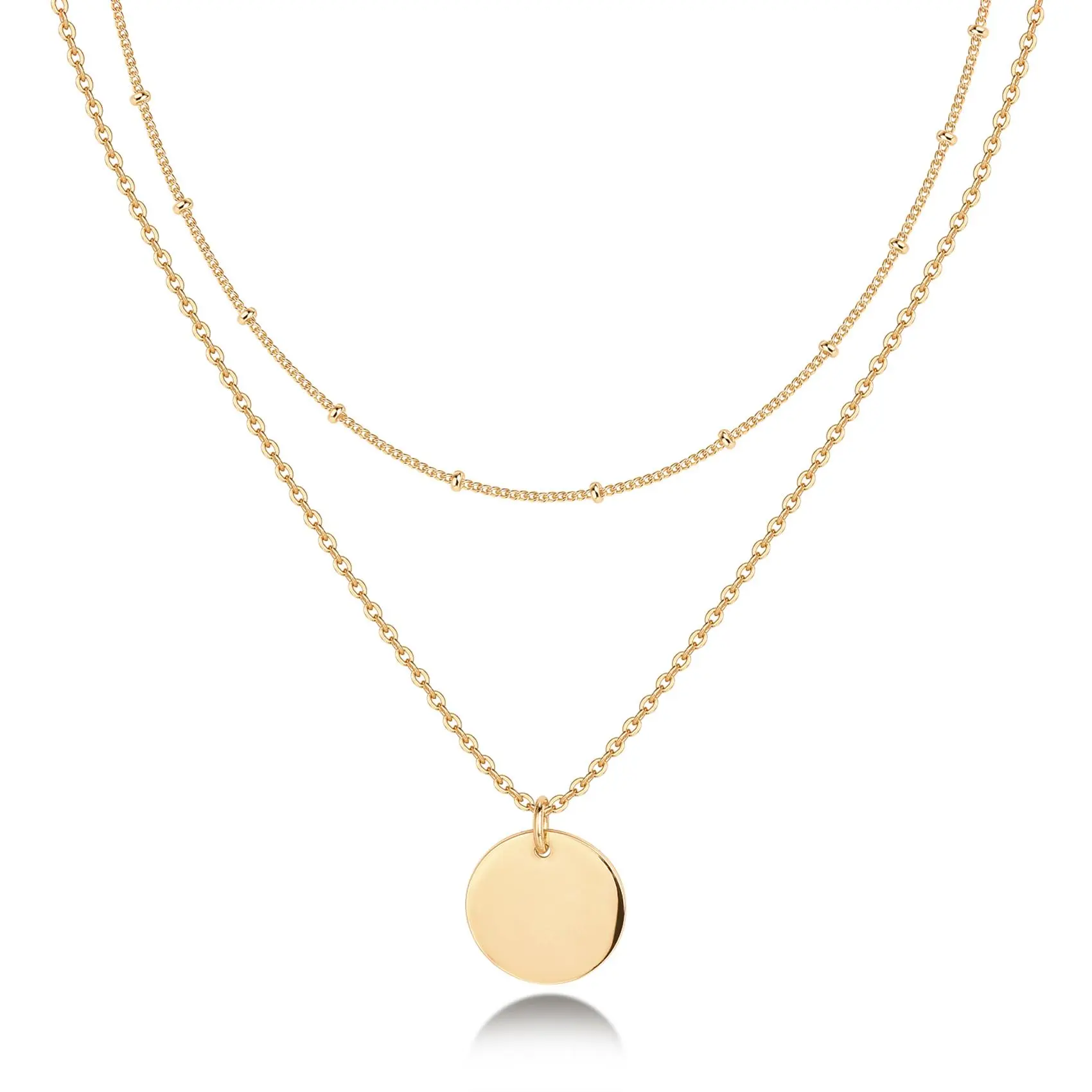 14K Gold Plated & Rhodium Plated Minimalist Layered Coin Pendant Necklace – Effortless Charm
