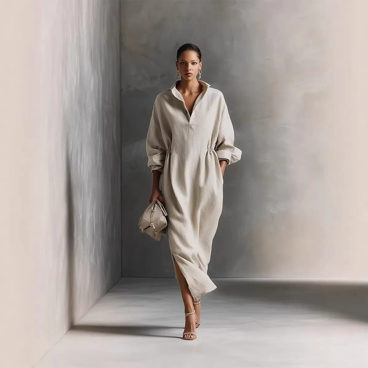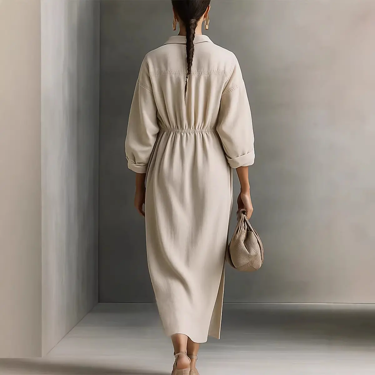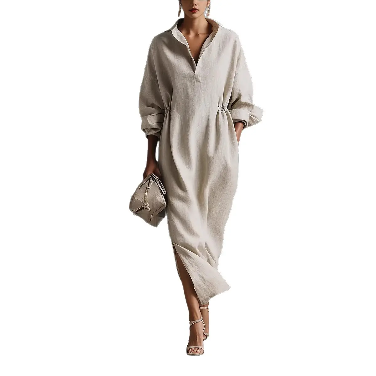 5. Minimalist Linen Shirt Dress - Perfect for Office, Brunch & Vacation! Oversized Collared Drawstring Waist Casual Dress # ShirtDress # OversizedDress # CasualDress # SummerDress # MinimalistFashion # MidiDress # DressesForWomen # Outfit of the Day