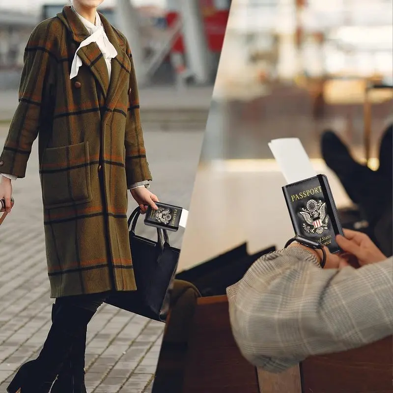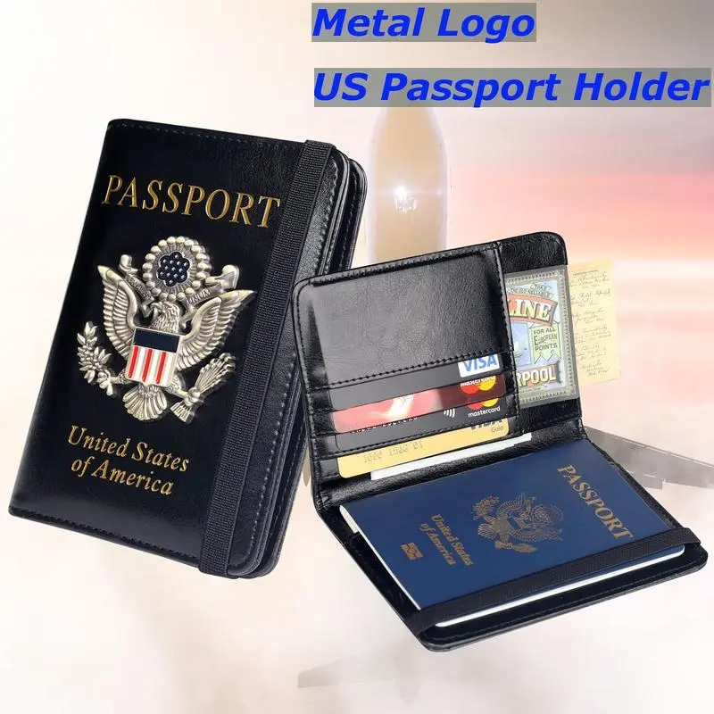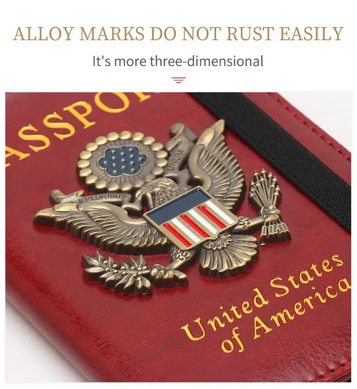 1.【Personalized Passport Holder】3D Metal US Logo Passport Holder with unique design will highlight your passport holder, a wonderful gift for family, loved ones, friends, passport holder is made of PU leather, soft and comfortable, waterproof and easy to clean.