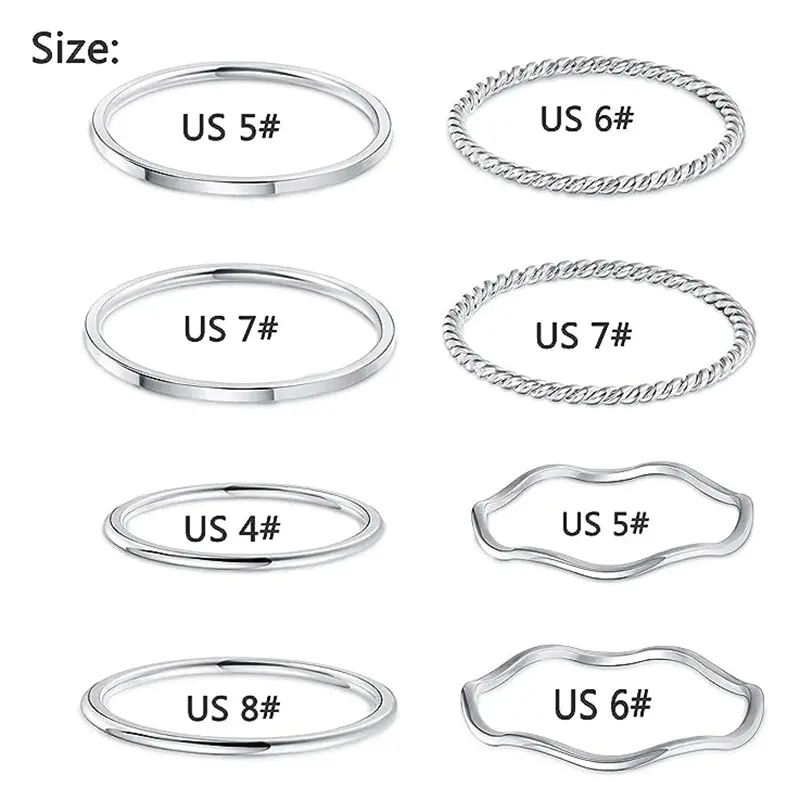 ·This 8 Pieces Stainless Steel Minimalist Ring Set is perfect for creating an on-trend layered look. It's made with quality stainless steel for durability and is hypoallergenic for sensitive skin. The minimalist design allows for seamless integration into any style.