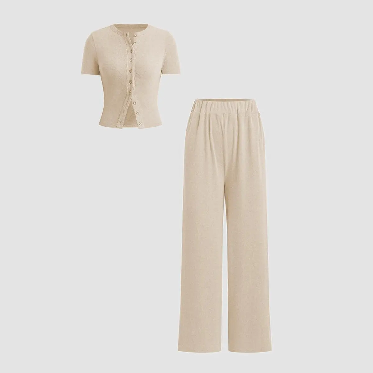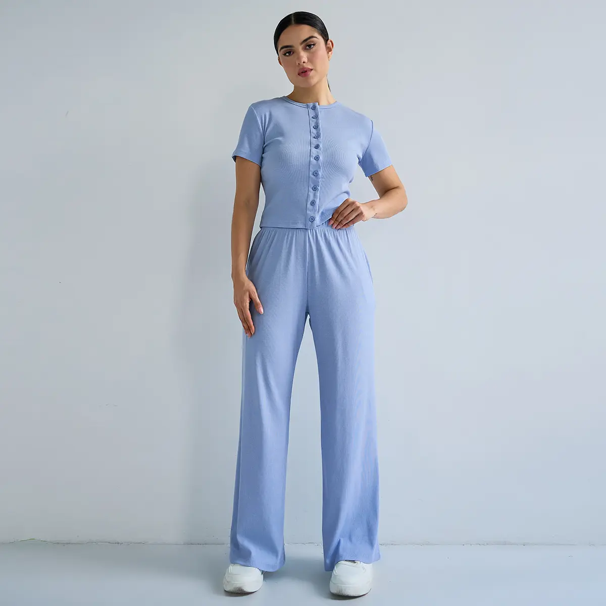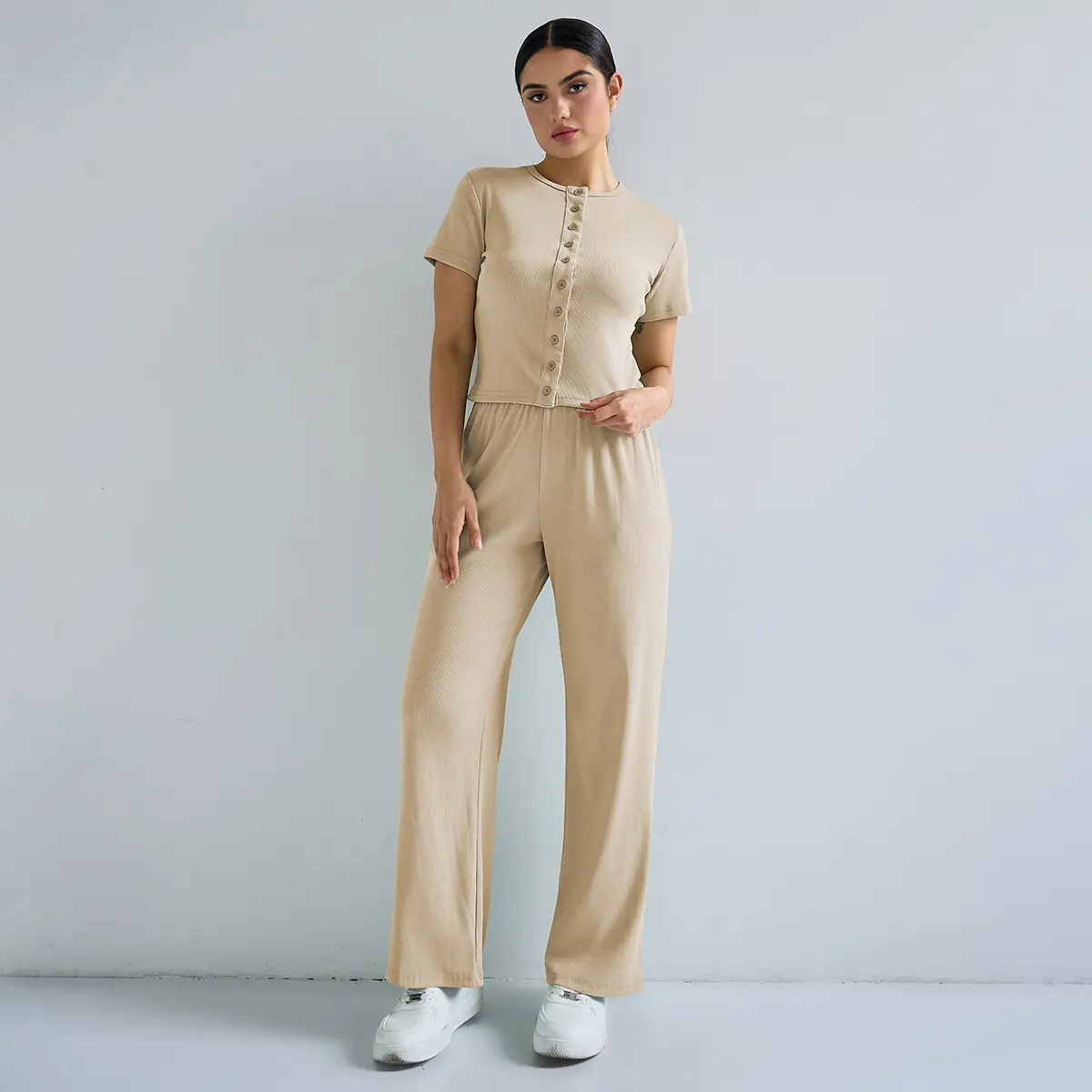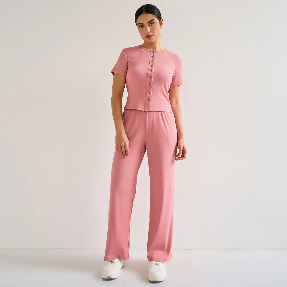 ·Details: Solid color, Round neck, Short sleeves, High waist, Plicated design, Soft fabric