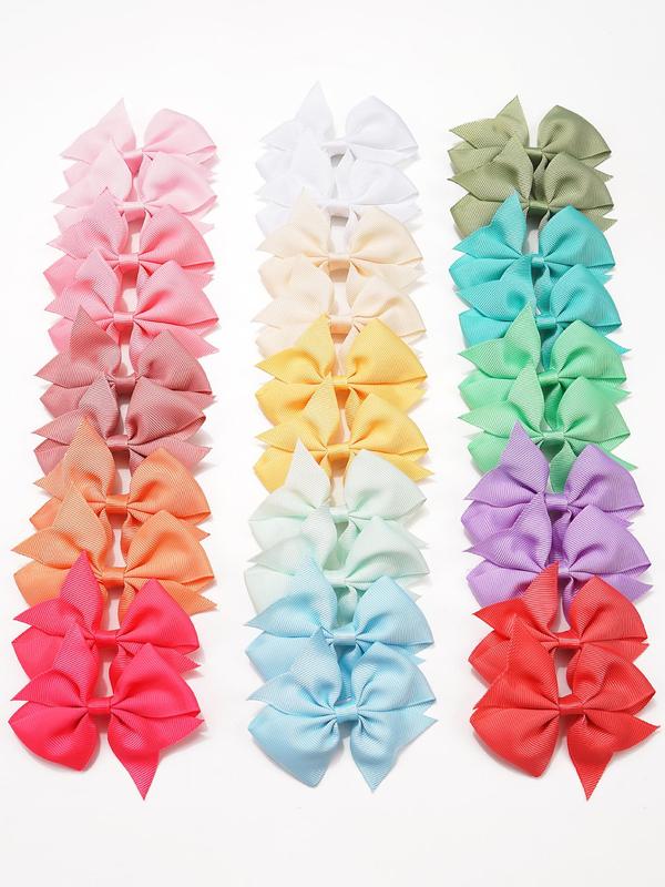 Minimalist Solid Color Bow Design Hair Clips, 30pcs/set Cute Bow Decor Hair Clips, Colorful Hair Accessories for Girls, Fashion Hair Accessories for Kids