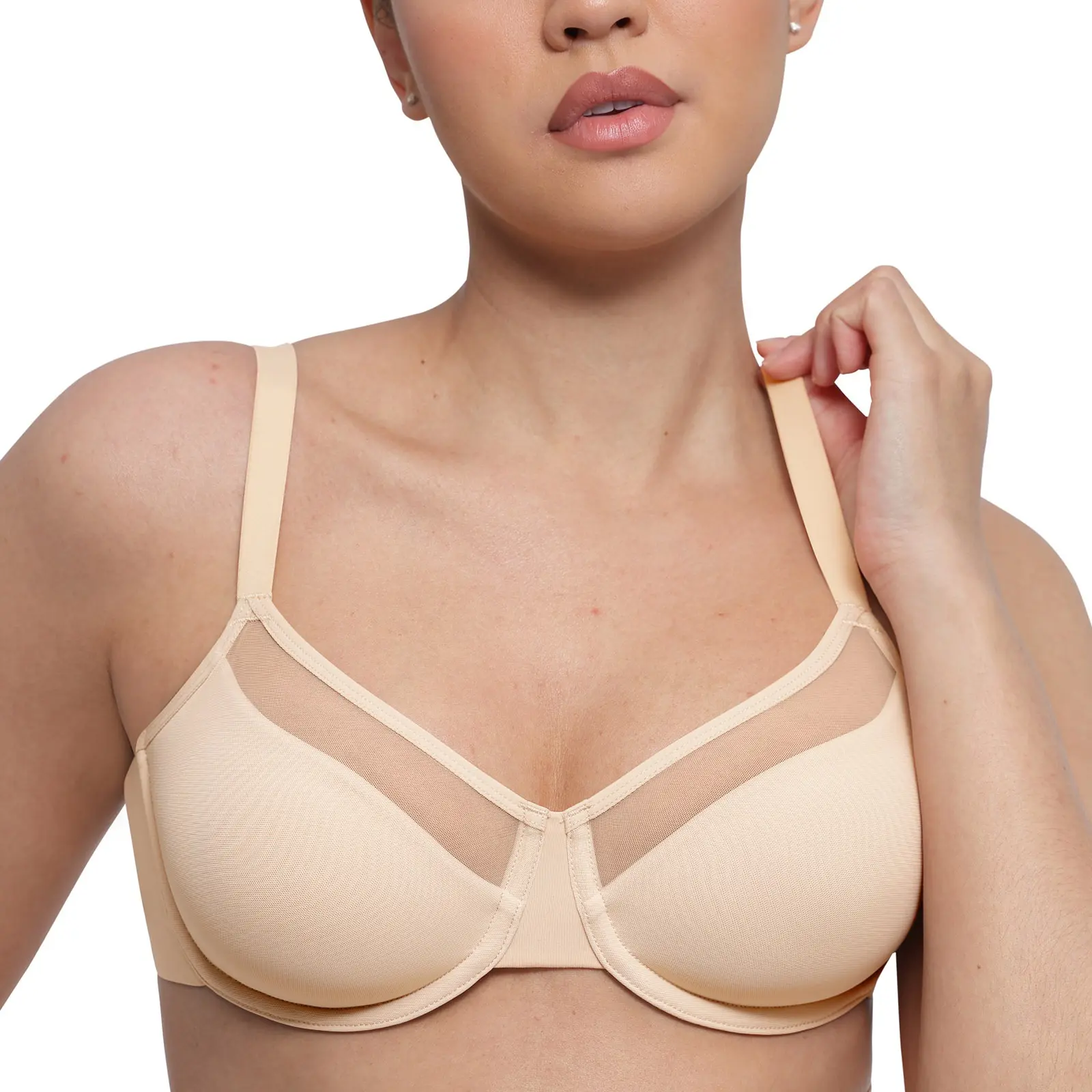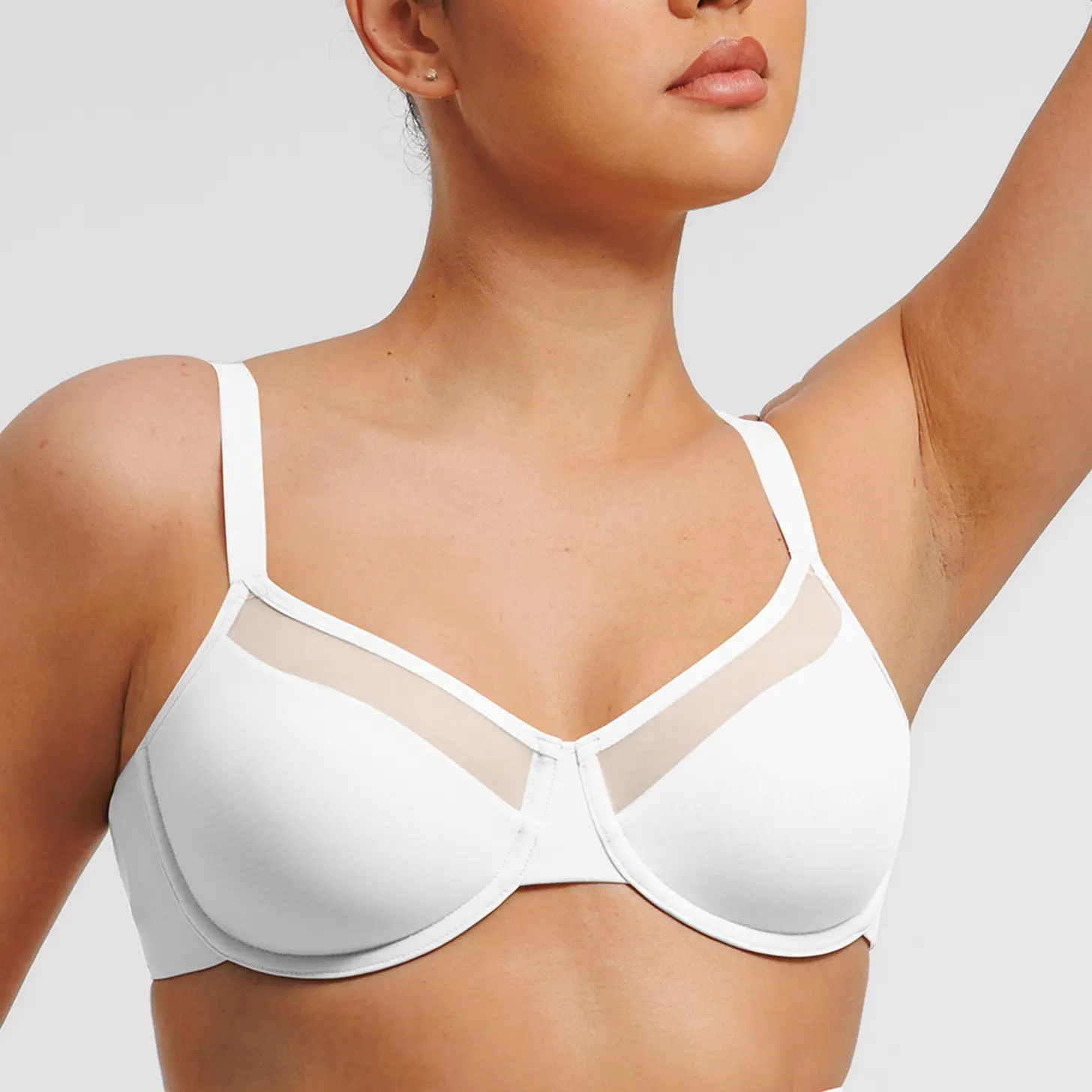 If you have a bigger chest, do not buy this OR you’ll have to size up significantly. This is my second time ordering with an even bigger size; but the way the bra is made it kind of given be the look of three boobs because my skin bulges out from the mesh part and top part due to how it is made. :/